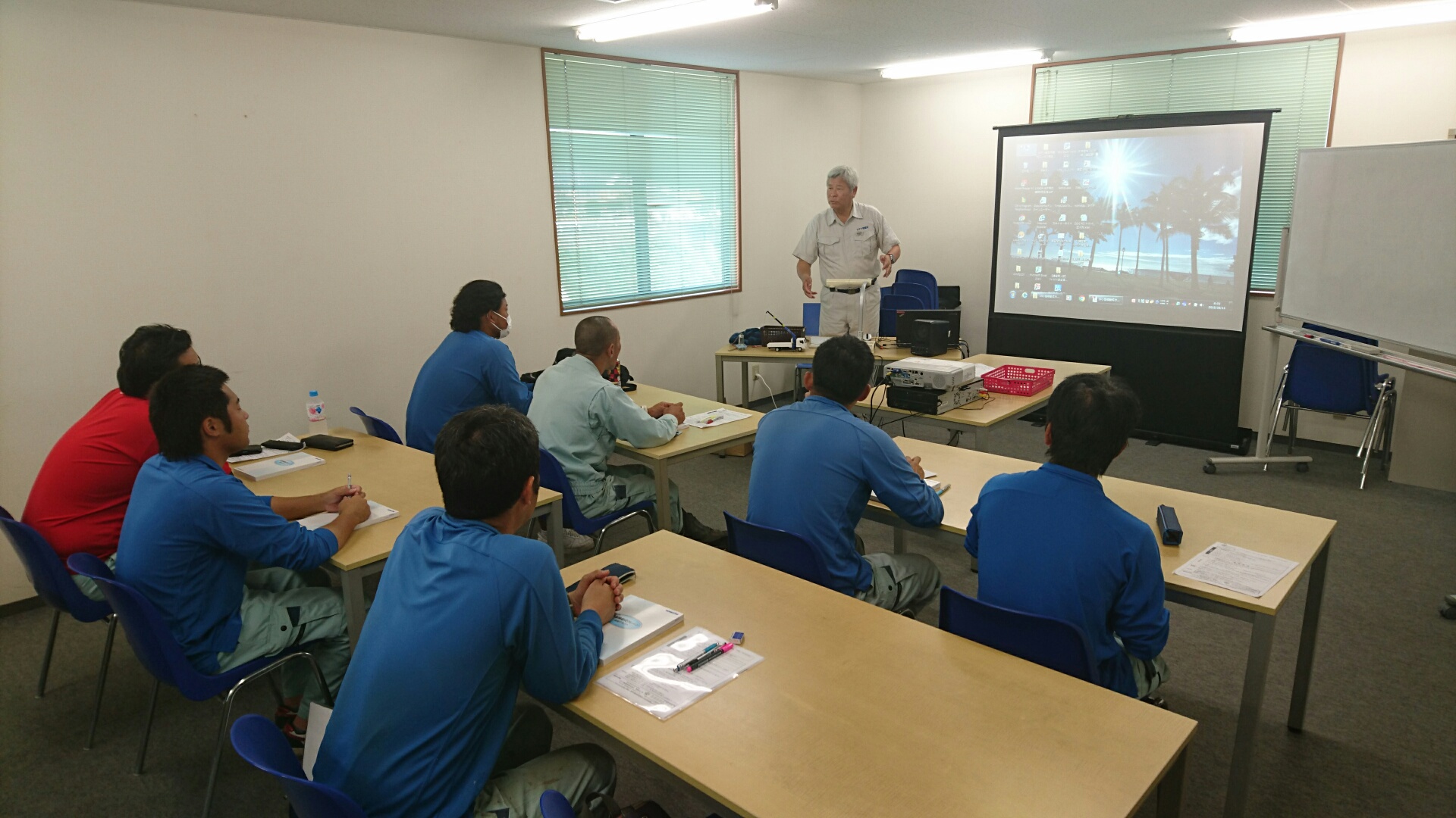 8月12日(土)、13日(日)の2日間、(株)リサイクルクリーン本社にて、コマツ教習所 様より出張講習を実施していただきます。今回は「小型移動式クレーン」についての講義です。弊社からは夏休み中にも関わらず各工場の作業担当者7名が参加しました。「小型移動式クレーン」は、弊社において、もっとも重要な資格といっても過言ではありません、しっかり習得することが求められます。