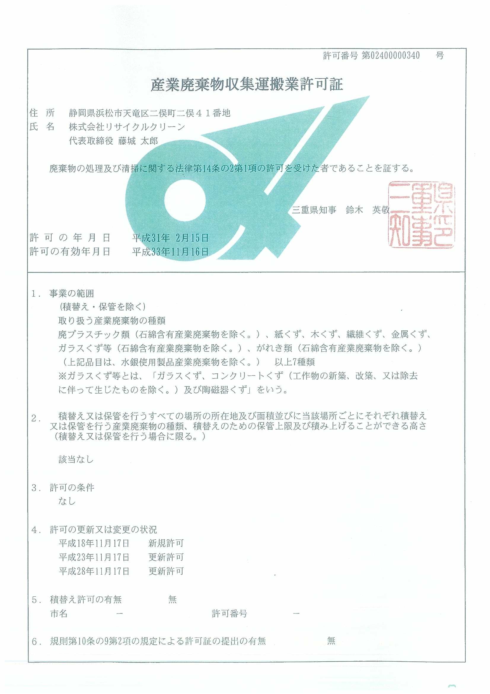●産業廃棄物収集運搬業 静岡県第02201000340号