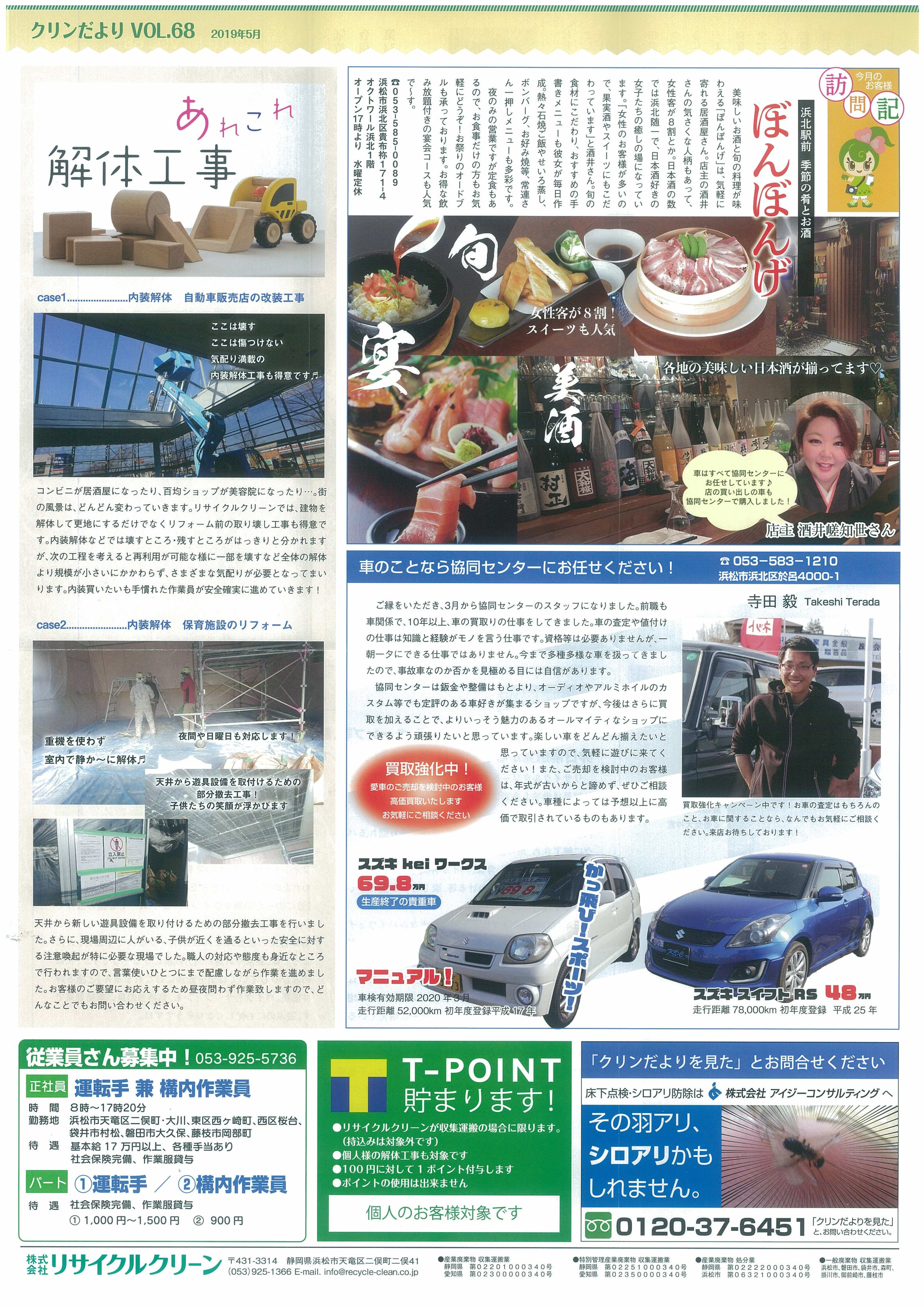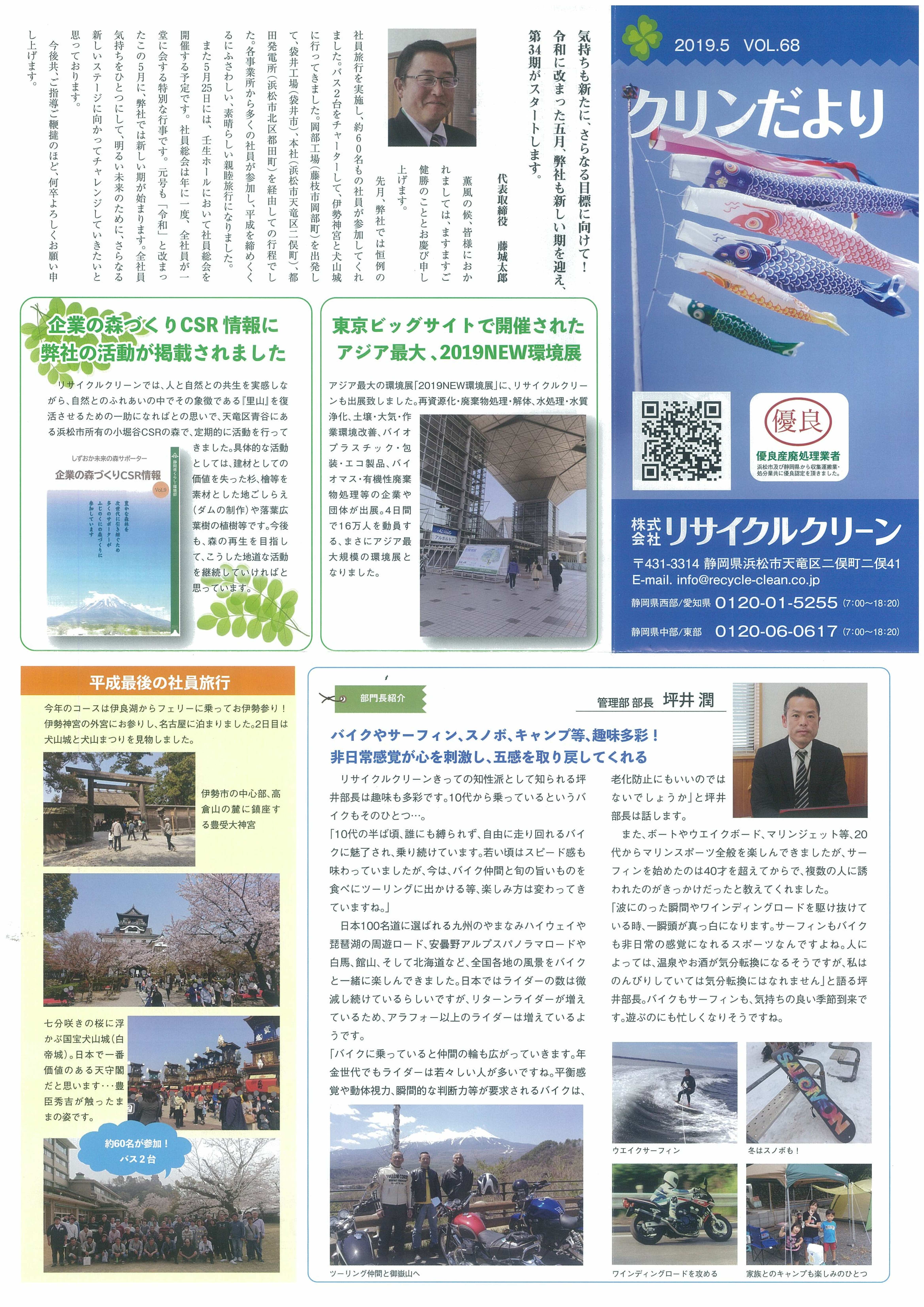 「クリンだより2019.5vol.68」完成しました。【4月26日】