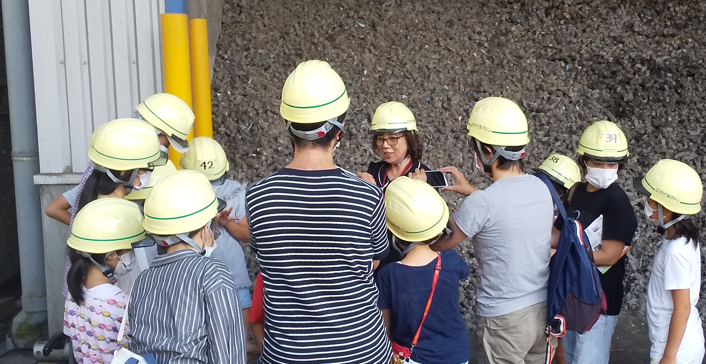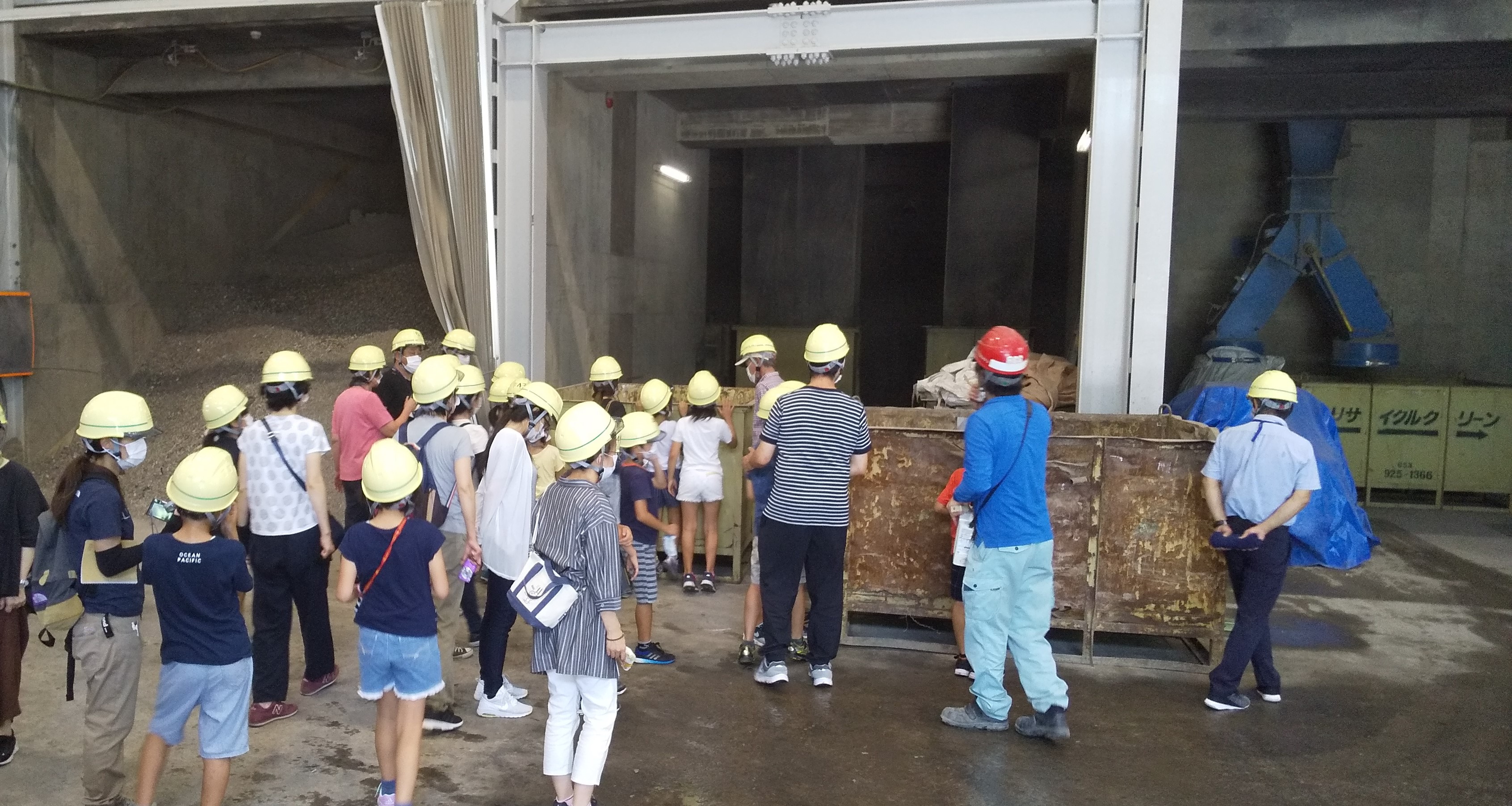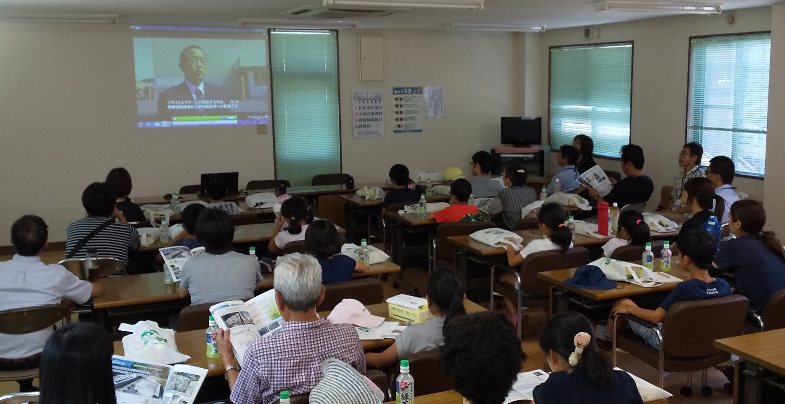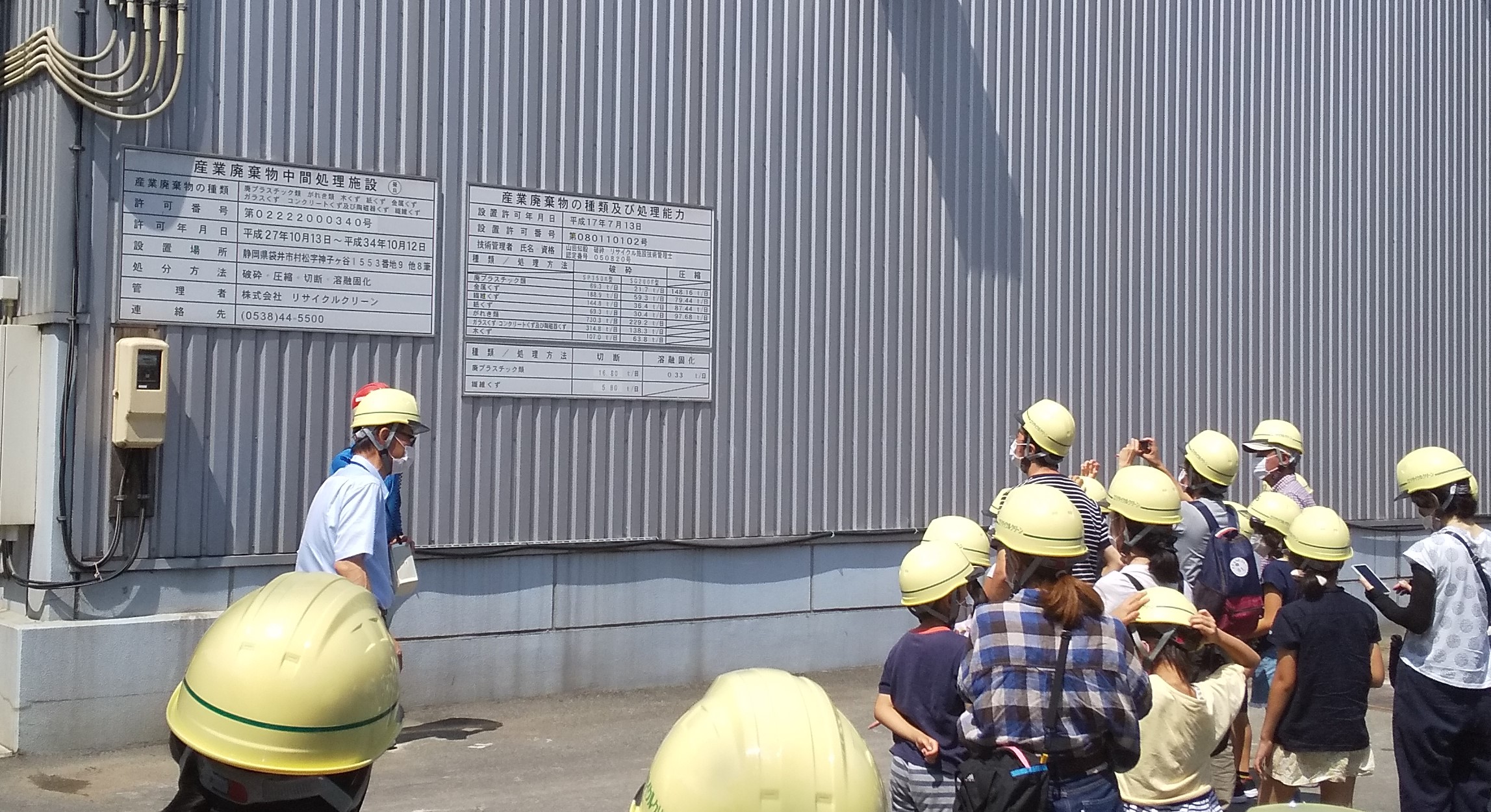 7月30日(火)、静岡県産業廃棄物協会主催の「ぼくらはさんぱい探偵団」34名様(中部支部、清水区の小学生親子12組)が袋井工場の施設見学にみえられました。梅雨明け後の猛暑の中、研修室以外に冷房設備がない工場を約一時間、見学していただきました。