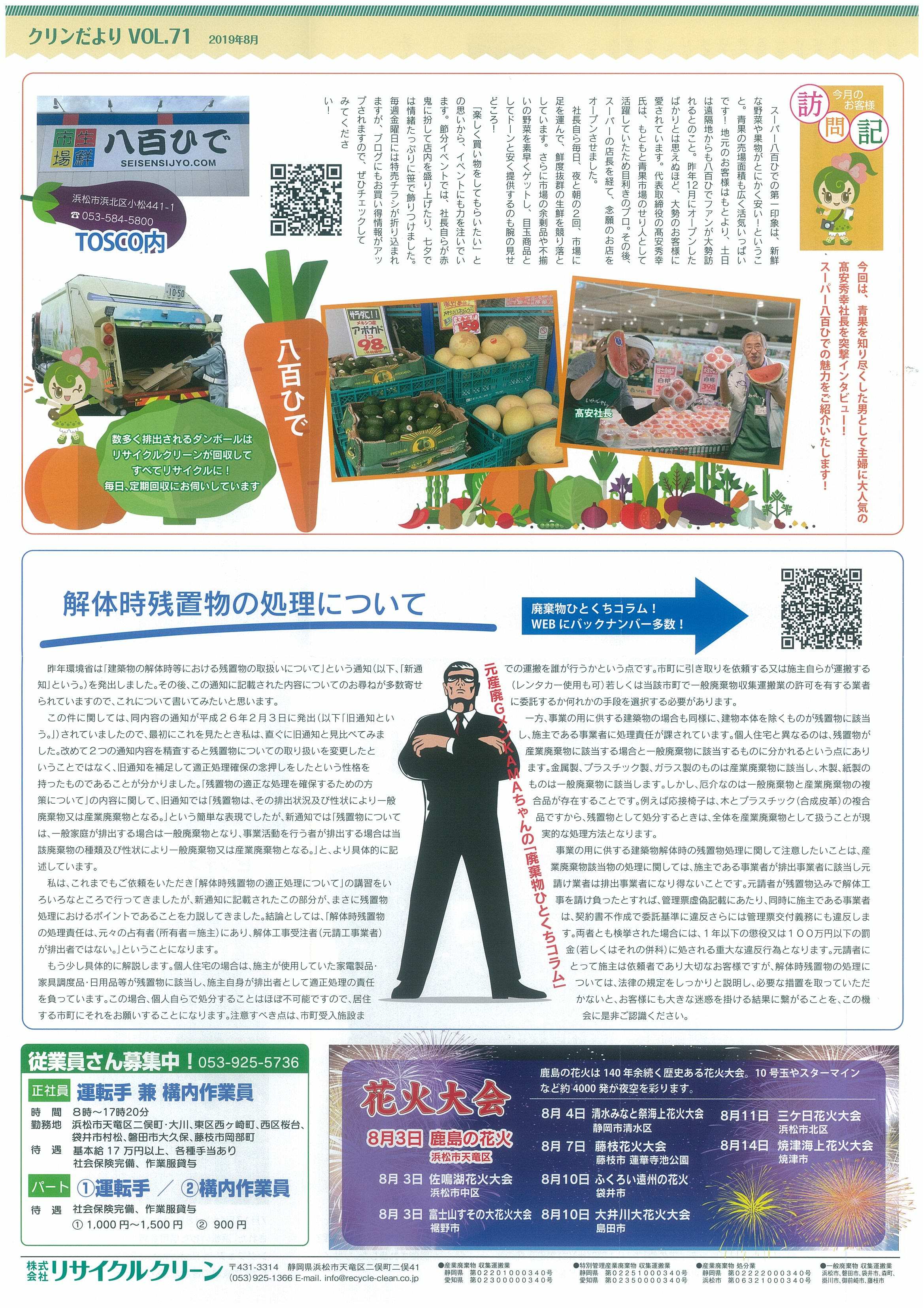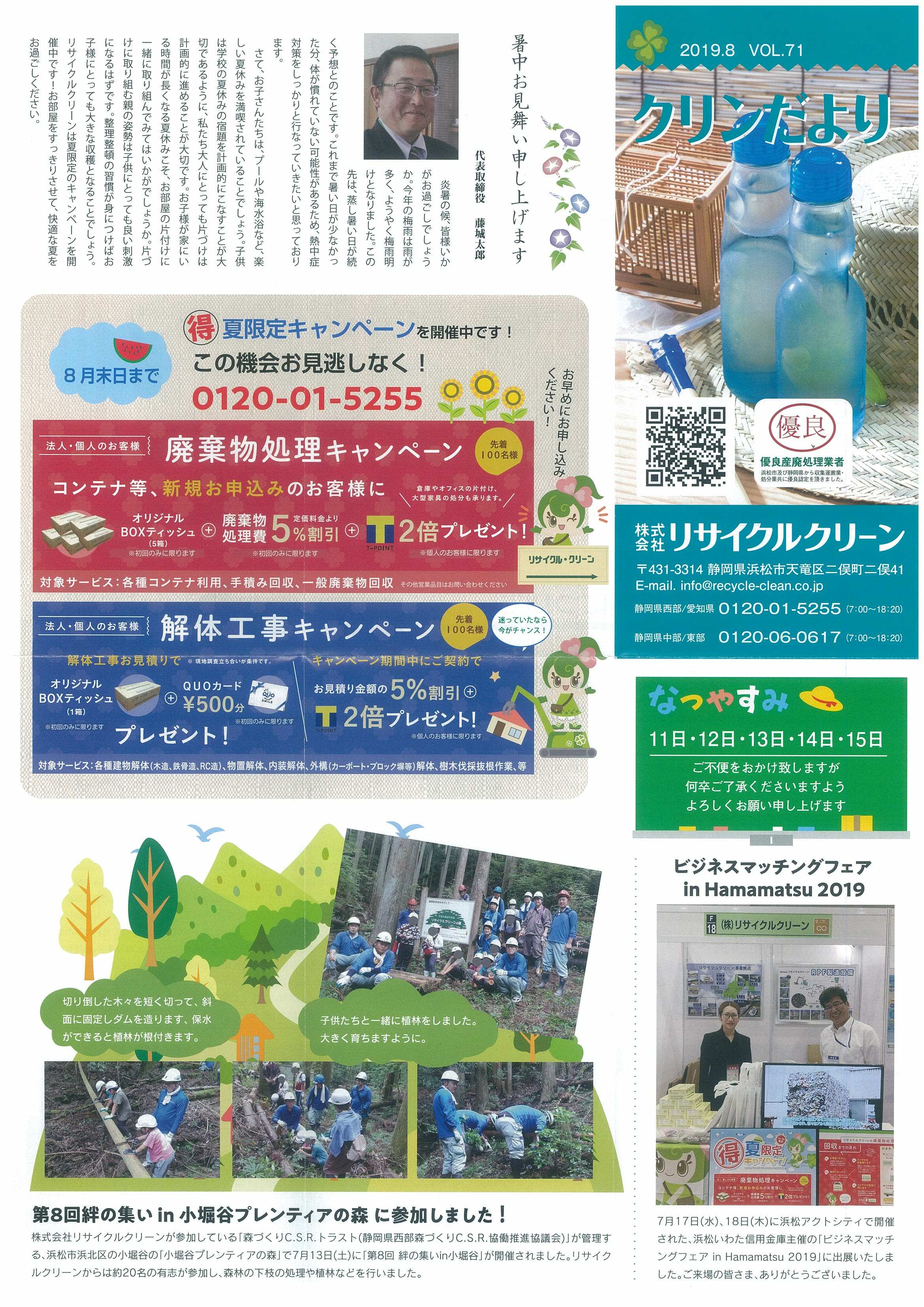 ㈱リサイクルクリーン広報誌「クリンだより」8月号完成しました。【8月1日】