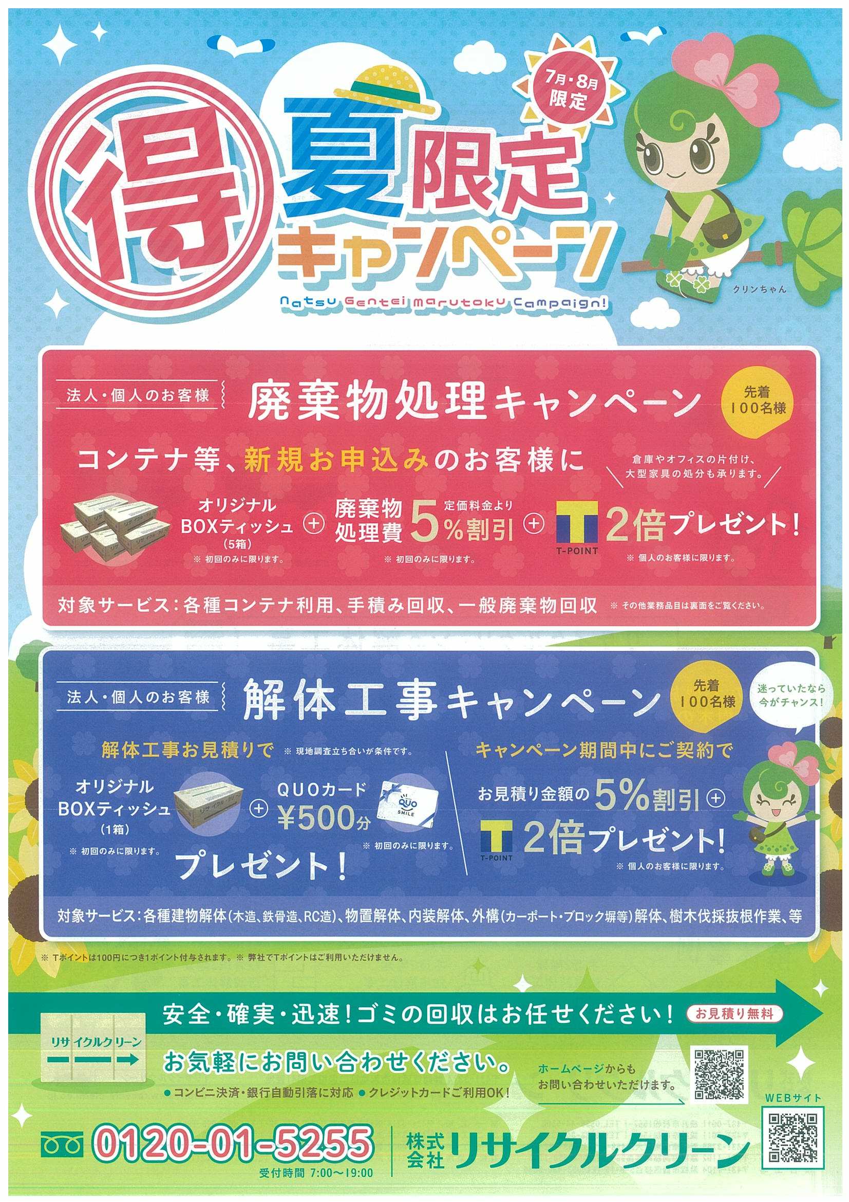 (株)リサイクルクリーン一般廃棄物夏限定キャンペーン建物解体産業廃棄物