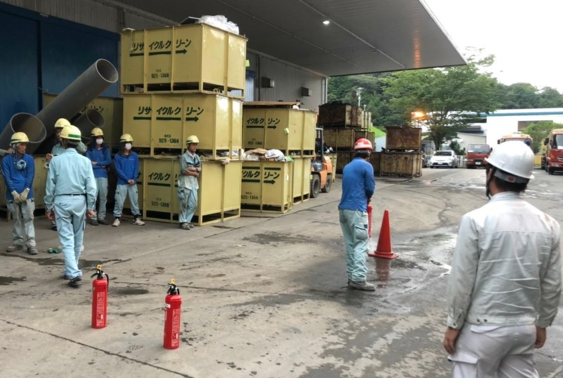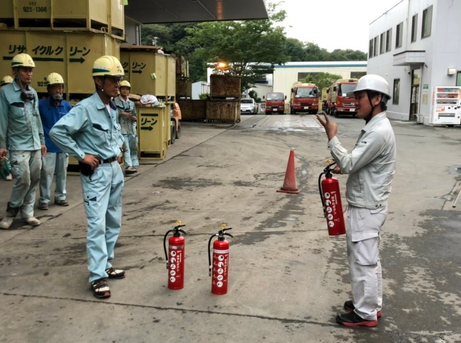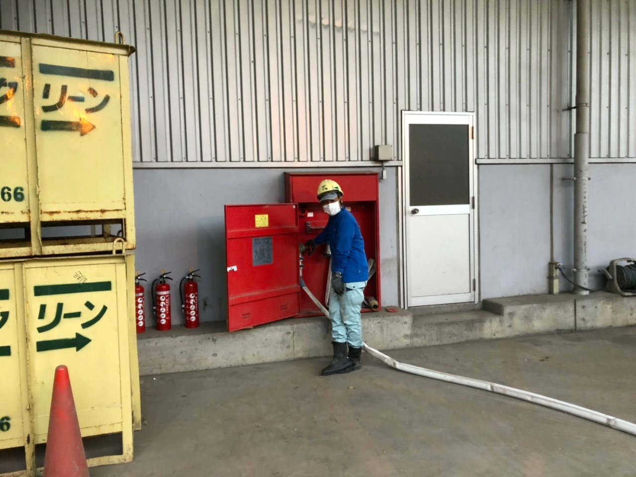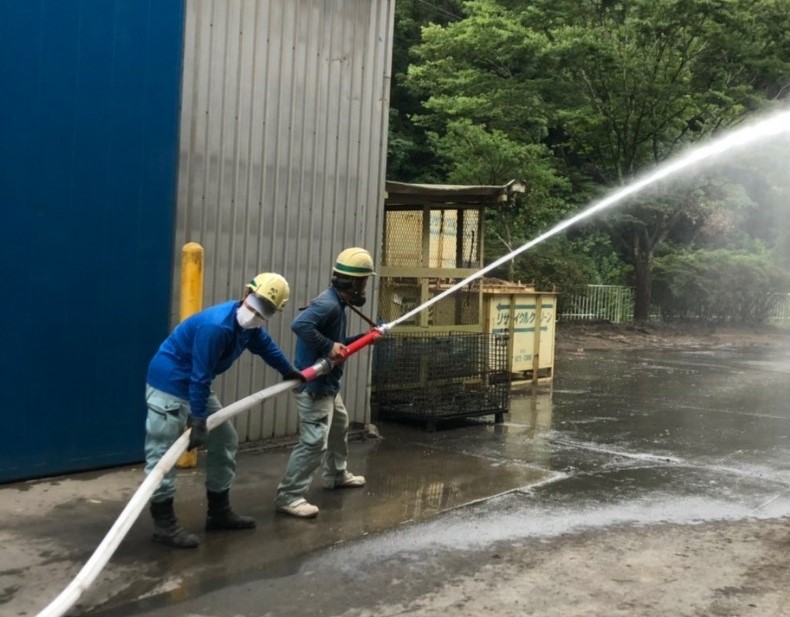 8月23日(金)、株式会社リサイクルクリーン袋井工場にて、消火訓練を実施しました。当日は消防設備の導入、点検等をお願いしている「浜松総合防災設備(株)」様のご協力をいただき、消火器の使い方、屋外消火栓の放水訓練を実施しました。