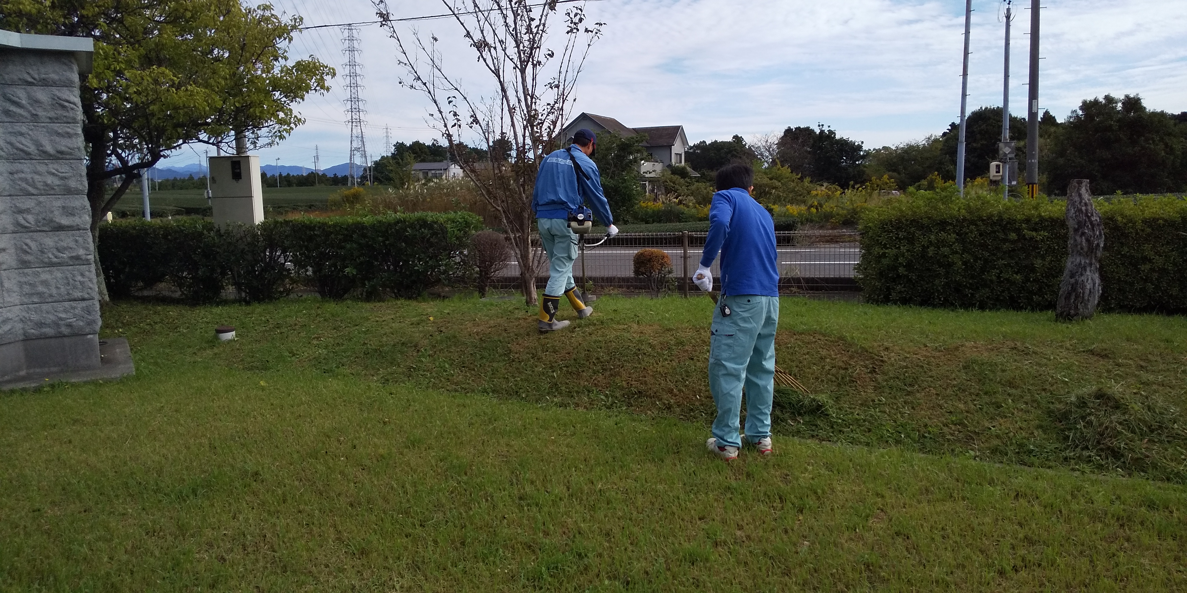 ①磐田工場+営業部+解体班は磐田市の「おおぞら公園」の除草作業を実施しました。