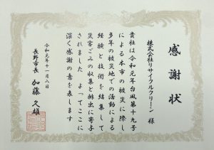 リサイクルクリーン感謝状災害支援活動長野市長
