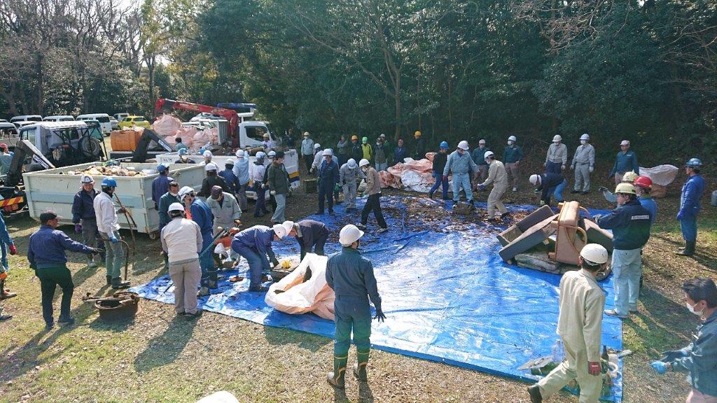 当日は約90名で4時間ほど作業をしました。フレコンバック30個(約30㎥)ほど処理をしました。
