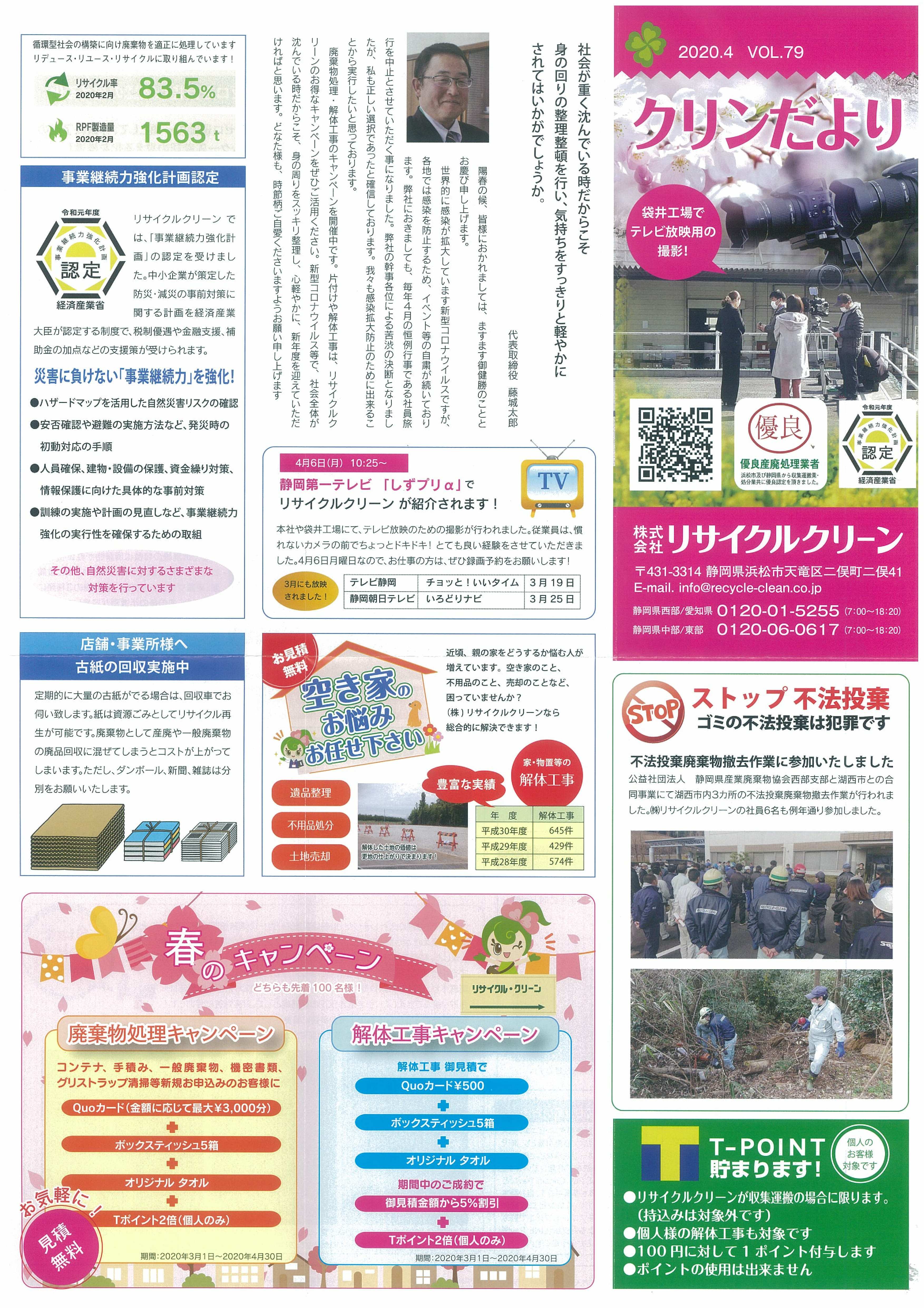 ㈱リサイクルクリーン広報誌「クリンだより」2020.4