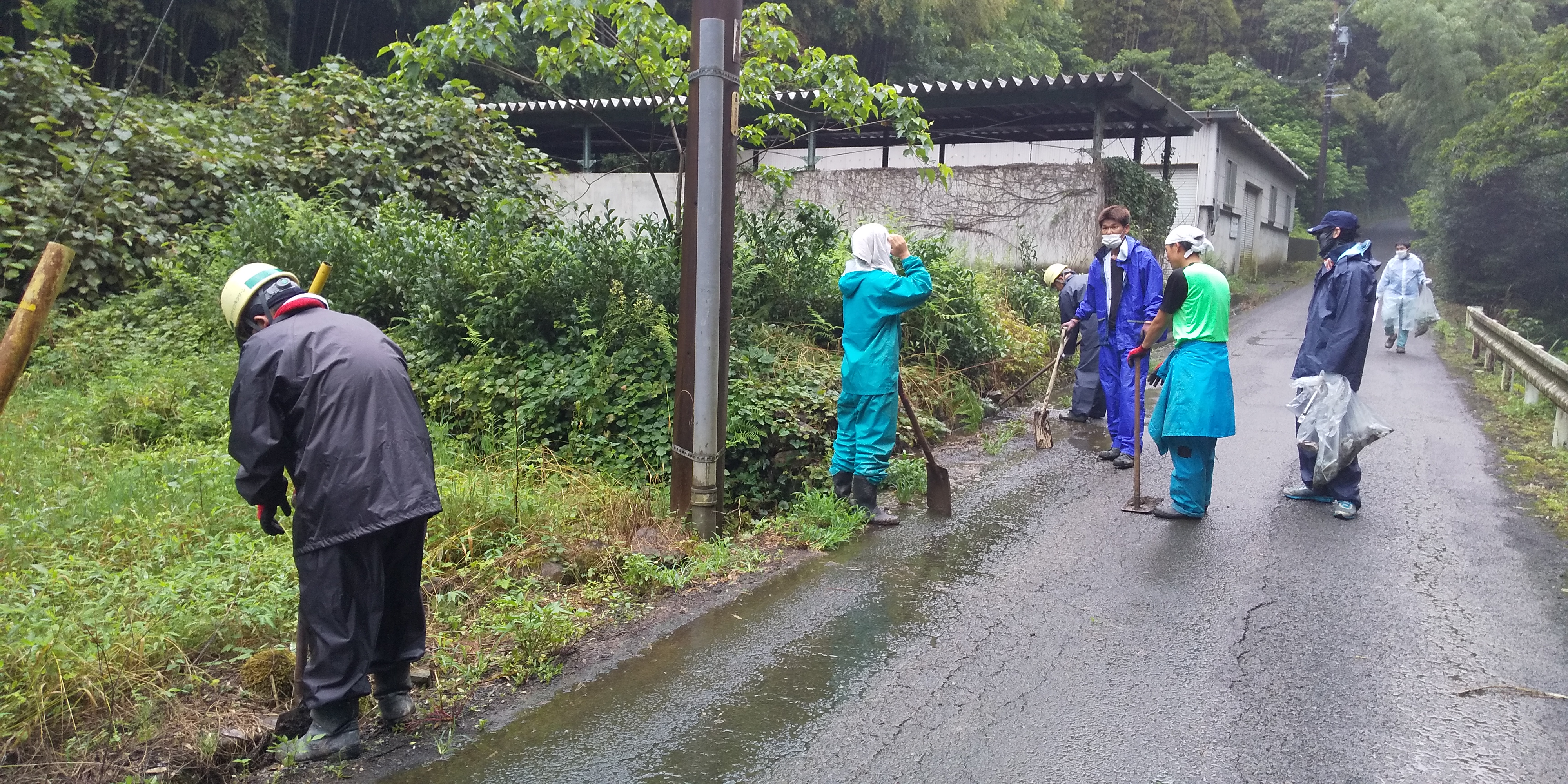 7月11日(土)、岡部工場のメンバーと本社営業部のメンバーが雨天決行で(株)リサイクルクリーン岡部工場の近隣道路の清掃を行いました。本当に雨の中での開催となり、雨具を着込んでの作業となりました。参加された皆様、お疲れさまでした。