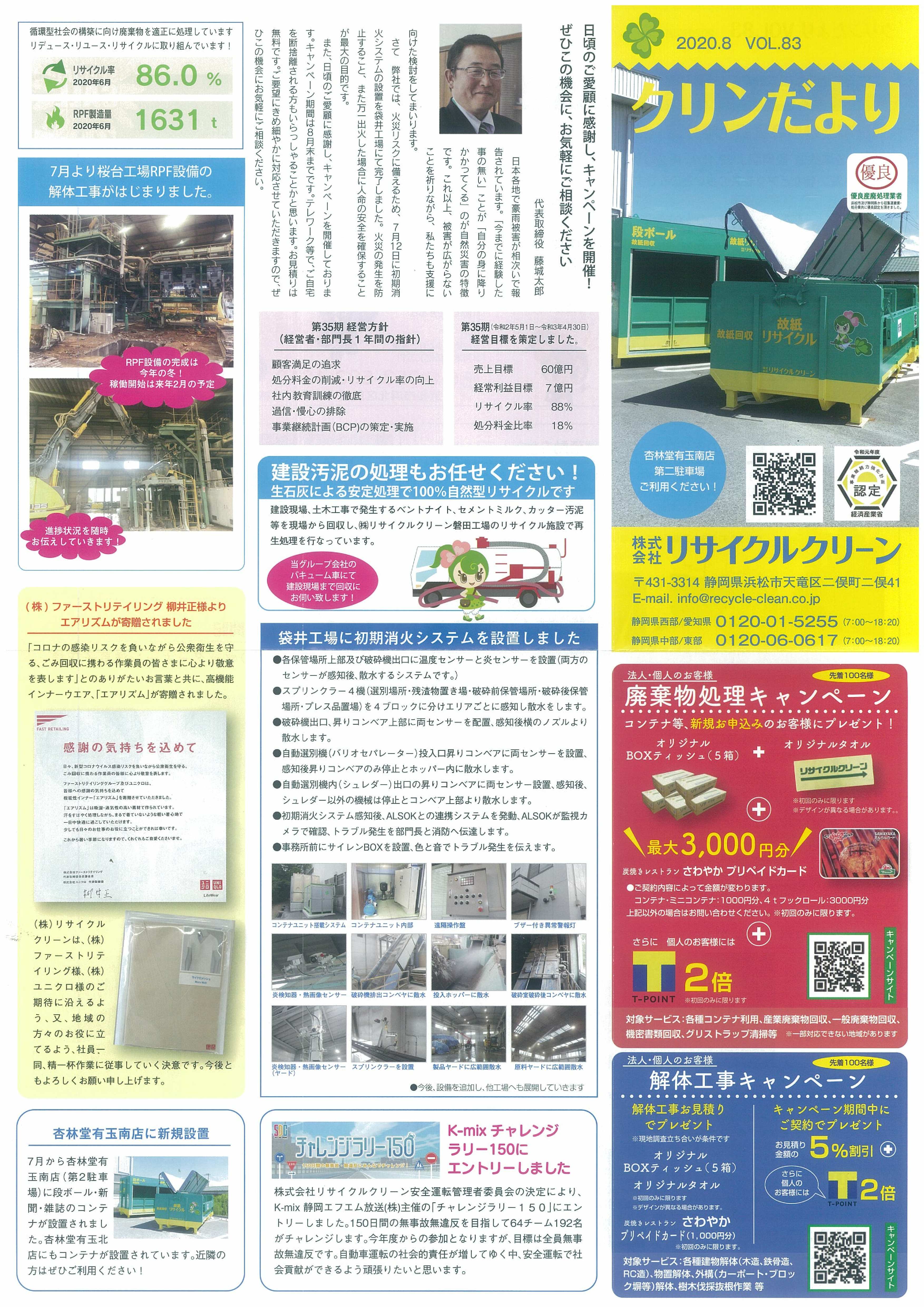 ㈱リサイクルクリーン広報誌「クリンだより」2020.8
