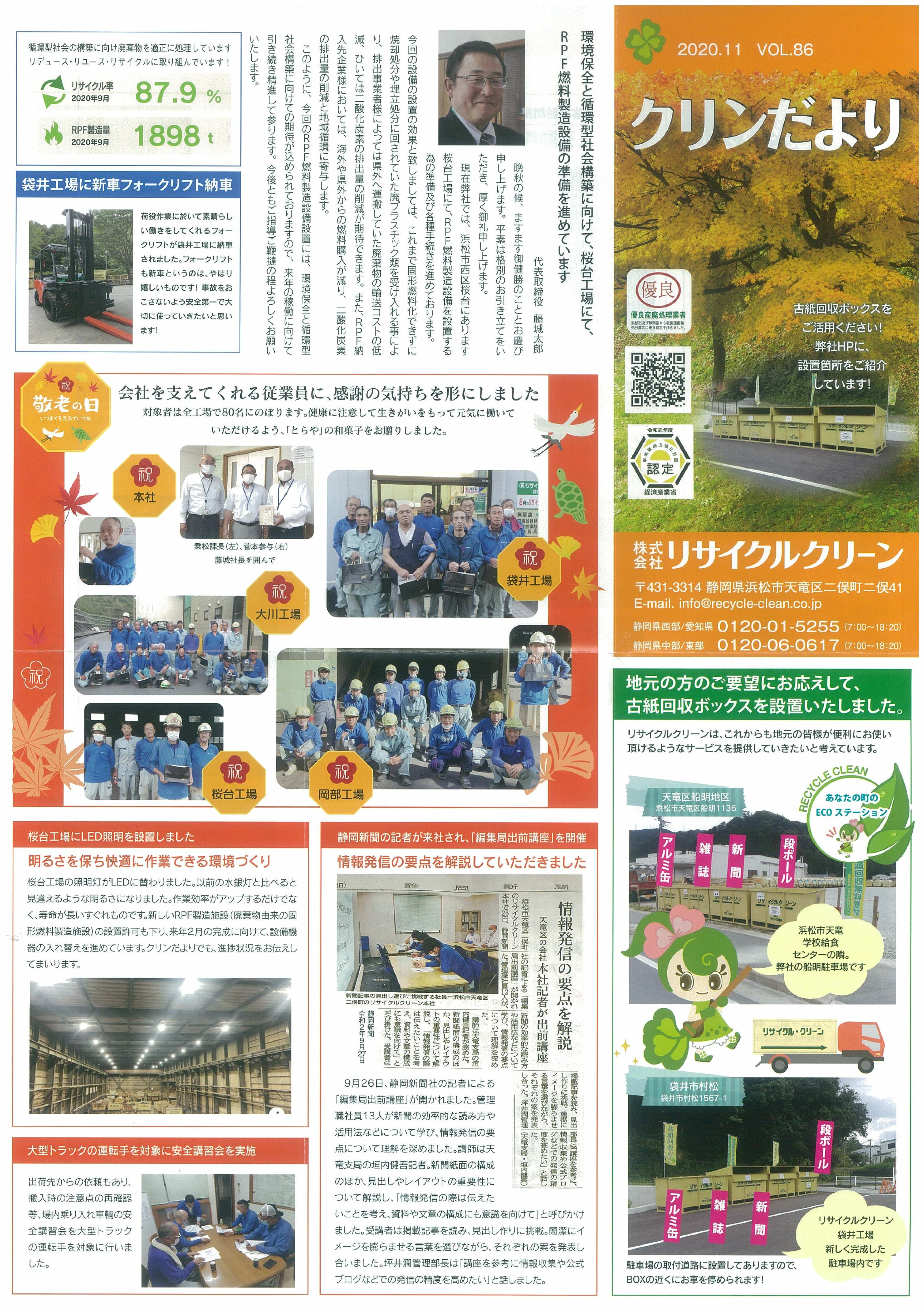 ㈱リサイクルクリーン広報誌「クリンだより」2020.11