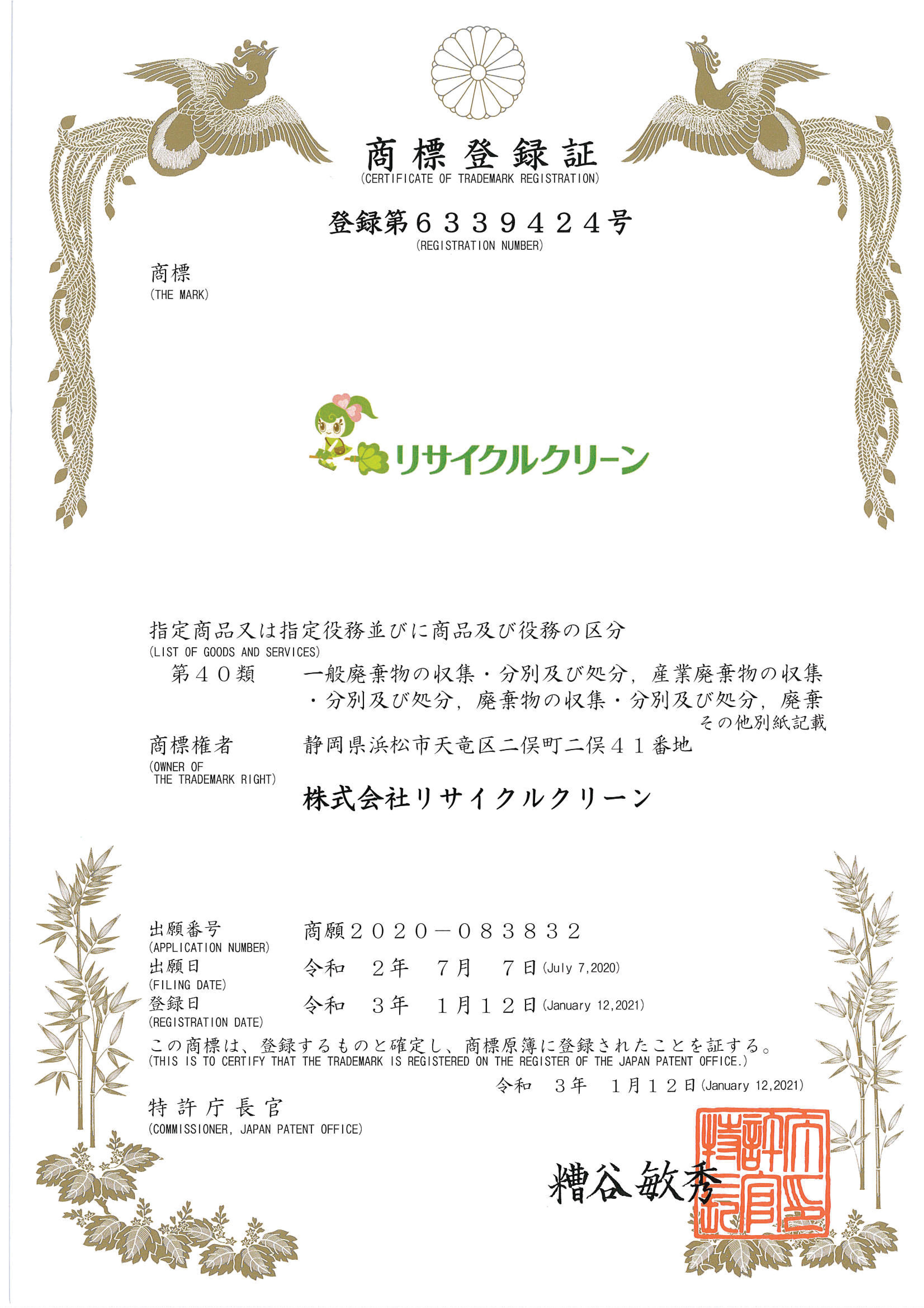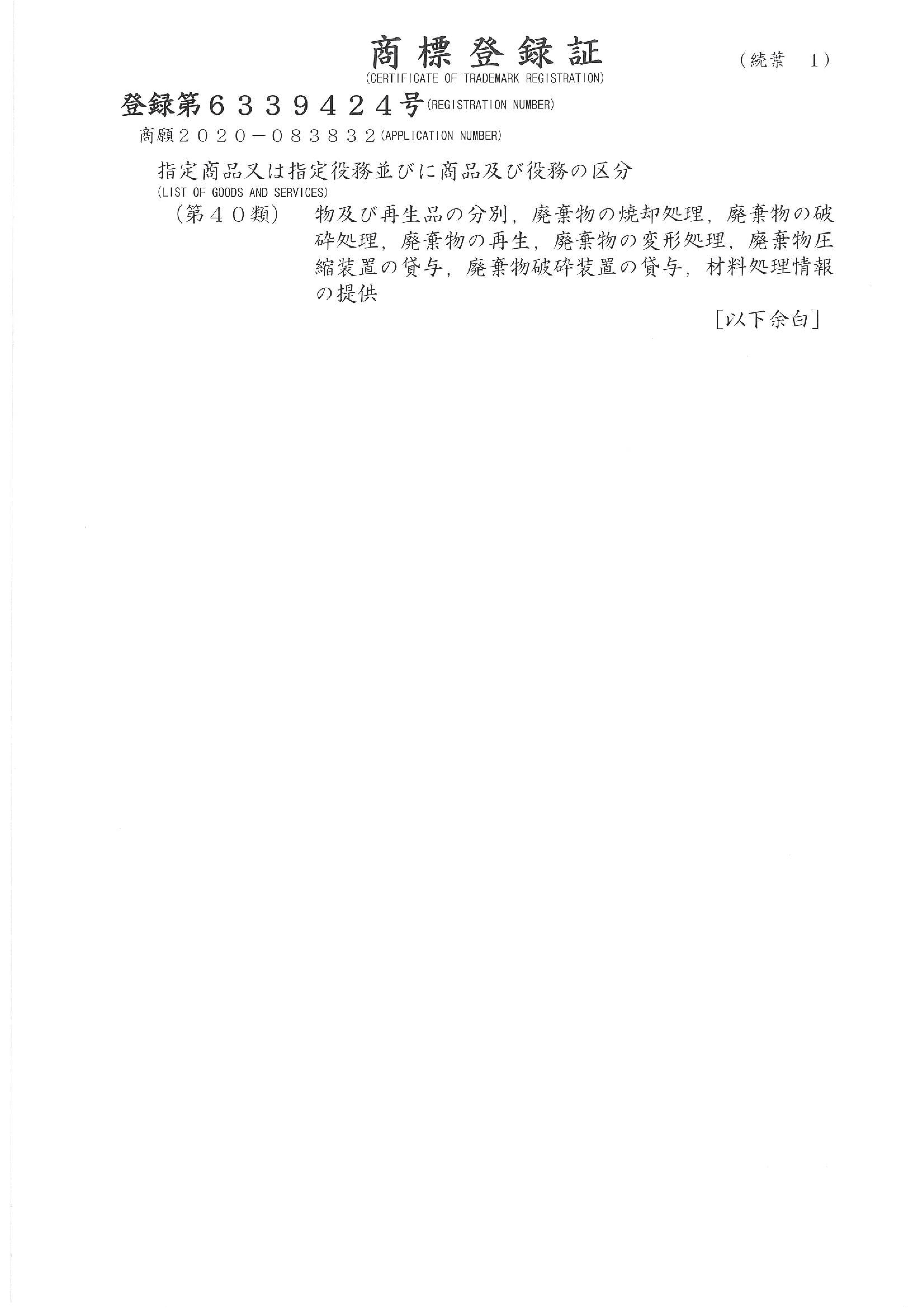 この商標登録を機に、株式会社リサイクルクリーンは「CSR(企業の社会的責任)」や「SDGs(サステナブルな社会の構築)」など、社会に貢献できる企業として、さらに成長をして行きたいと思います。