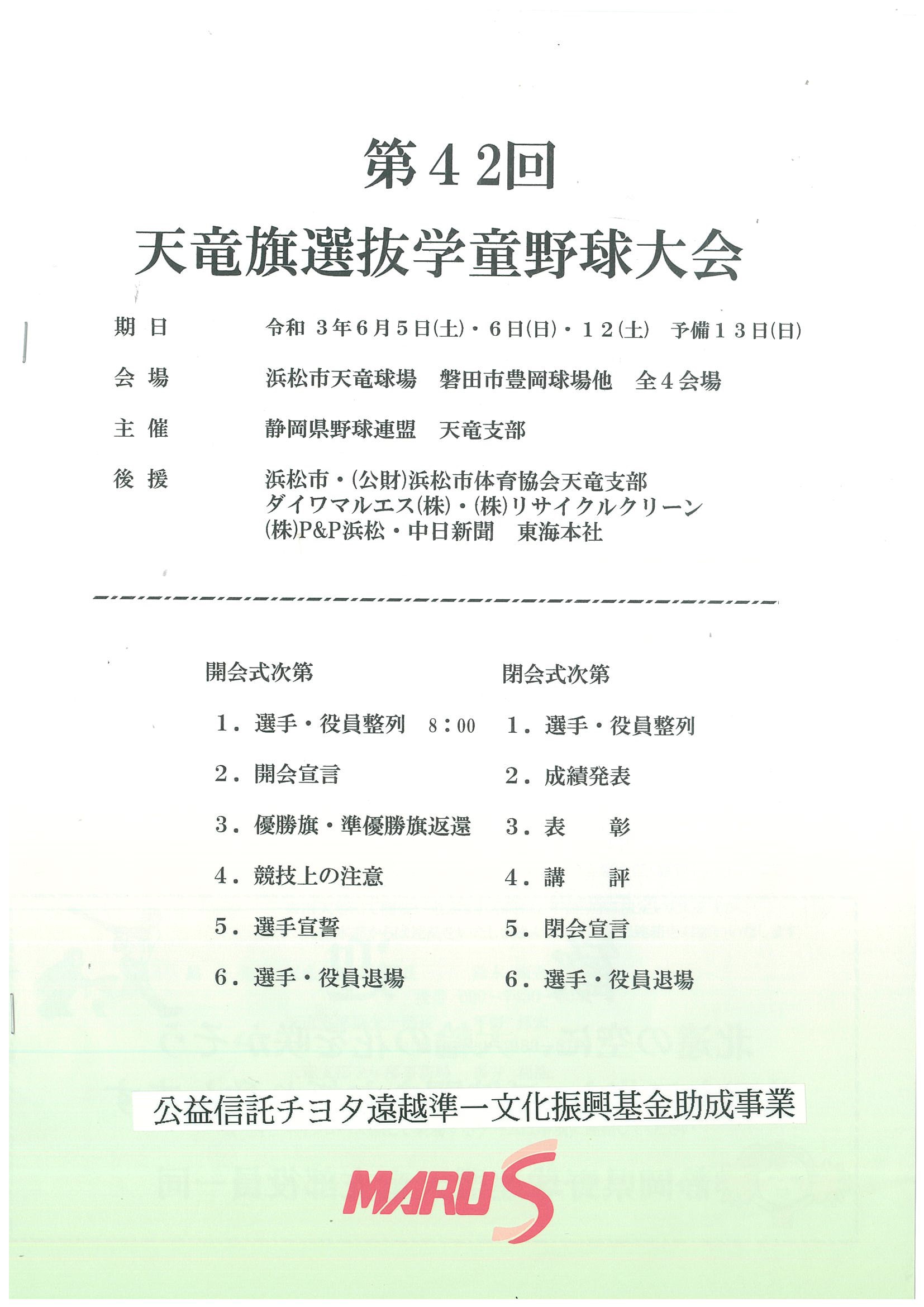 天竜旗選抜学童野球大会株式会社リサイクルクリーン