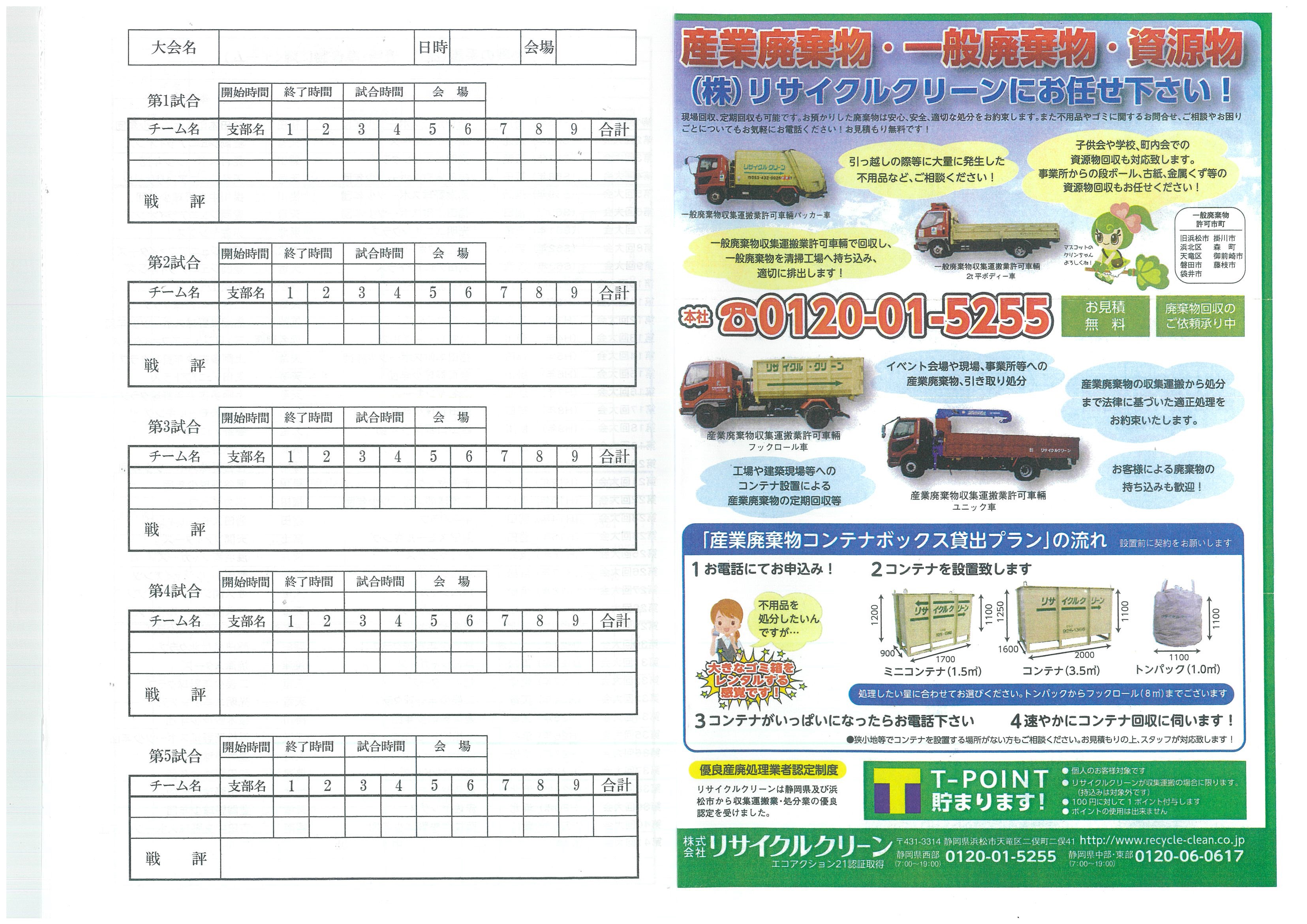 静岡県野球連盟天竜支部主催の「天竜旗選抜学童野球大会」のガイドブックに株式会社リサイクルクリーンの広告を掲載させていただきました。