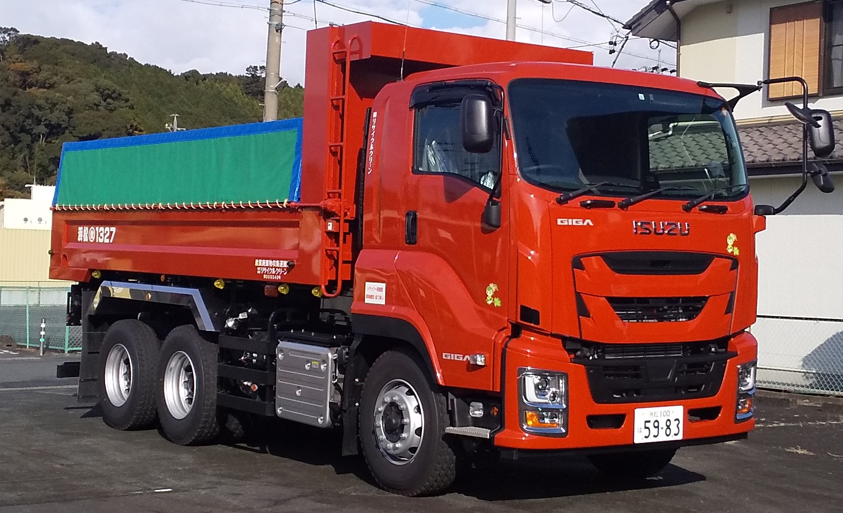 まずは運搬車両、最大積載量8,400㎏のダンプ車です。磐田工場に配置されます。