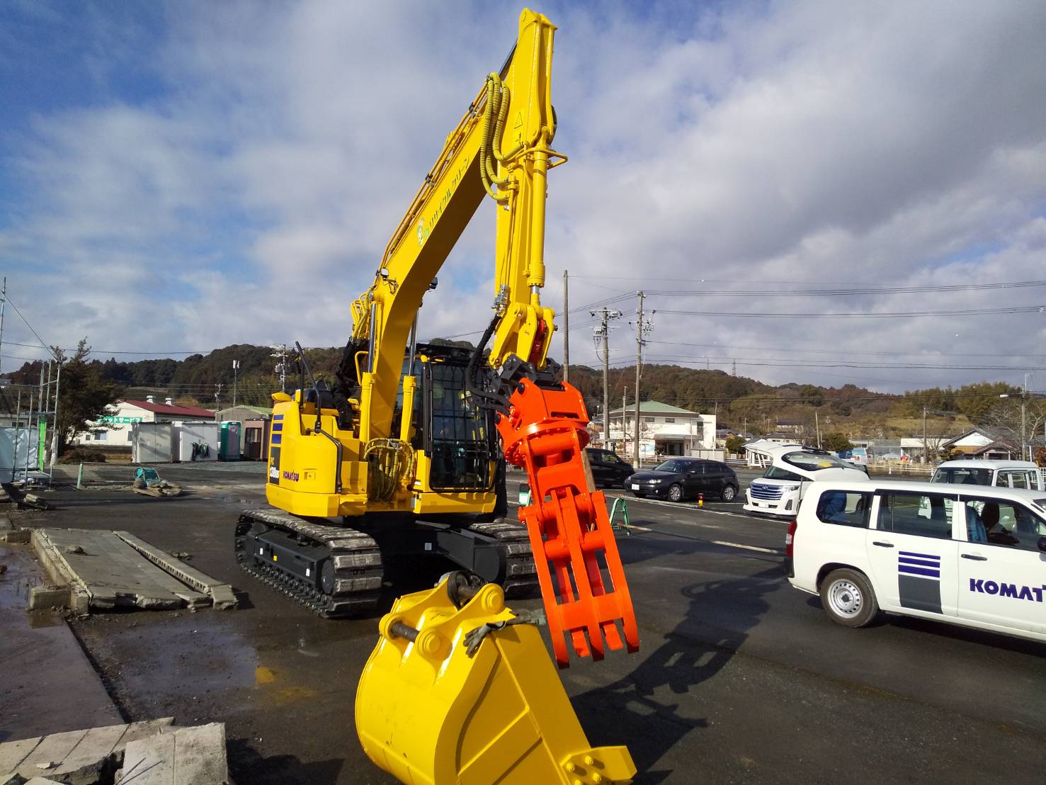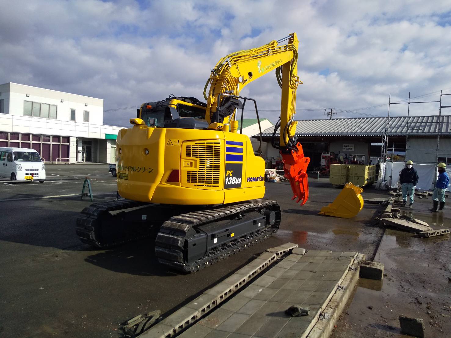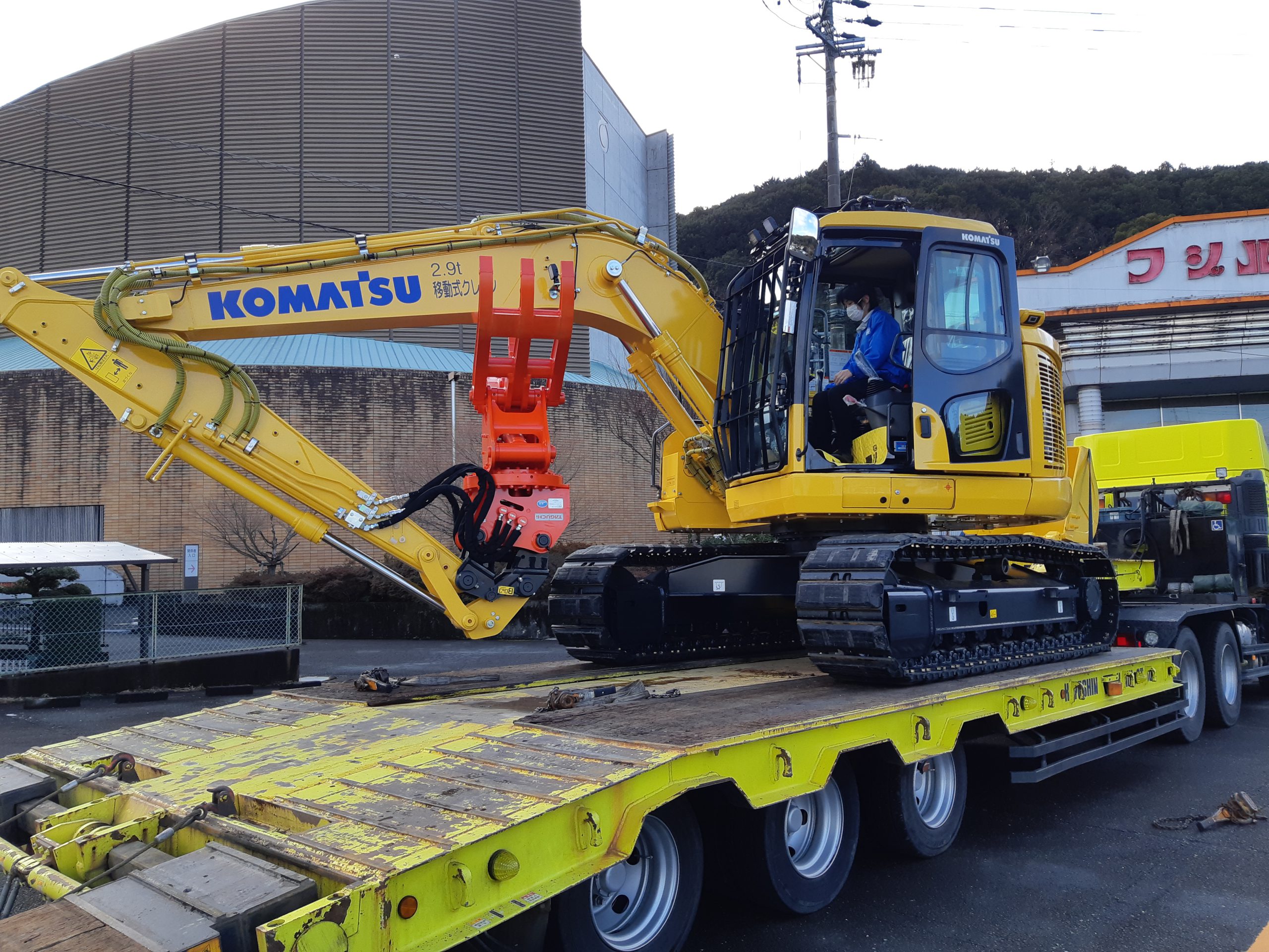 2月11日、株式会社リサイクルクリーンの解体工事現場で使用する重機が到着しました。