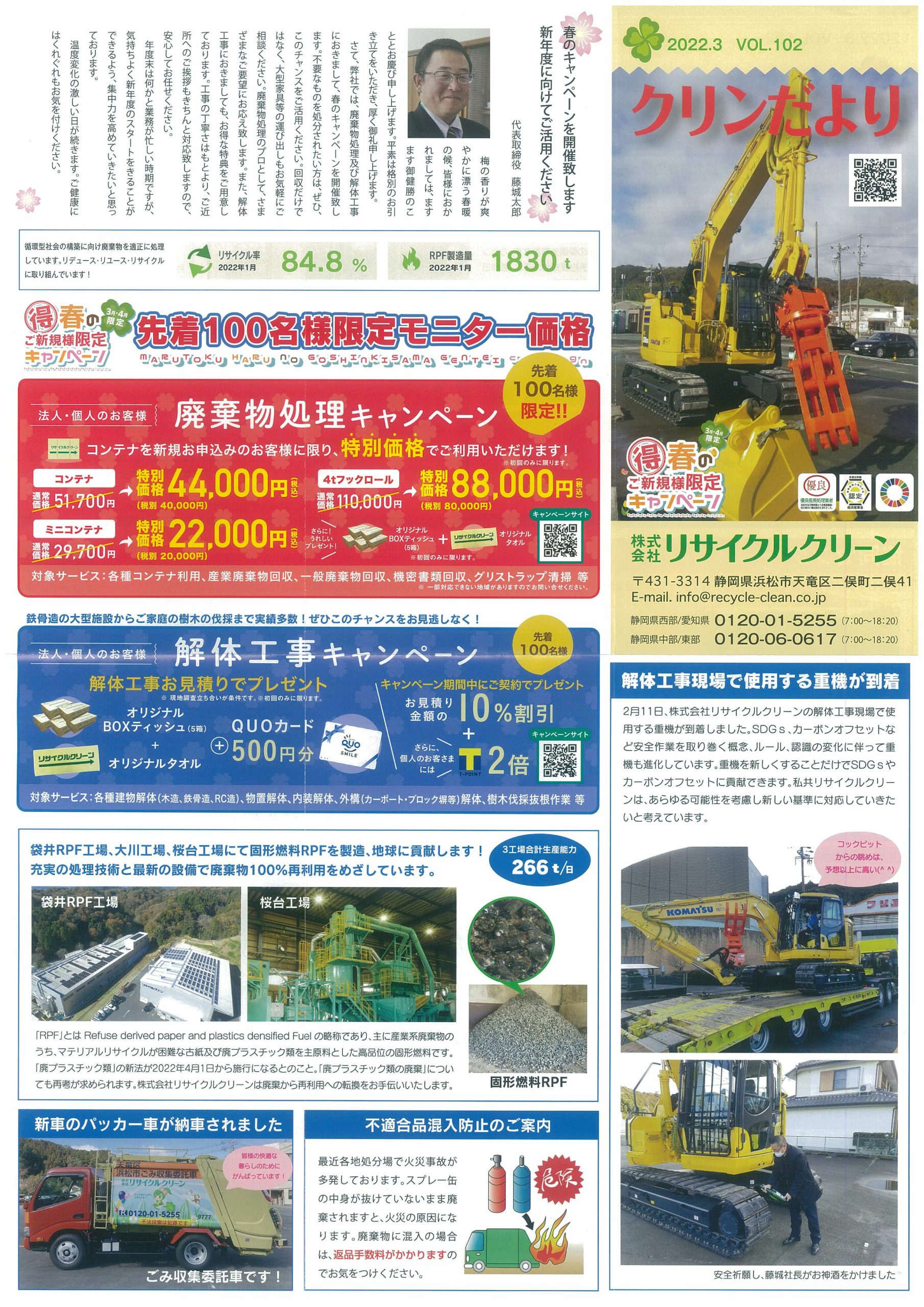 ㈱リサイクルクリーン広報誌「クリンだより」2022.4.VOL.103
