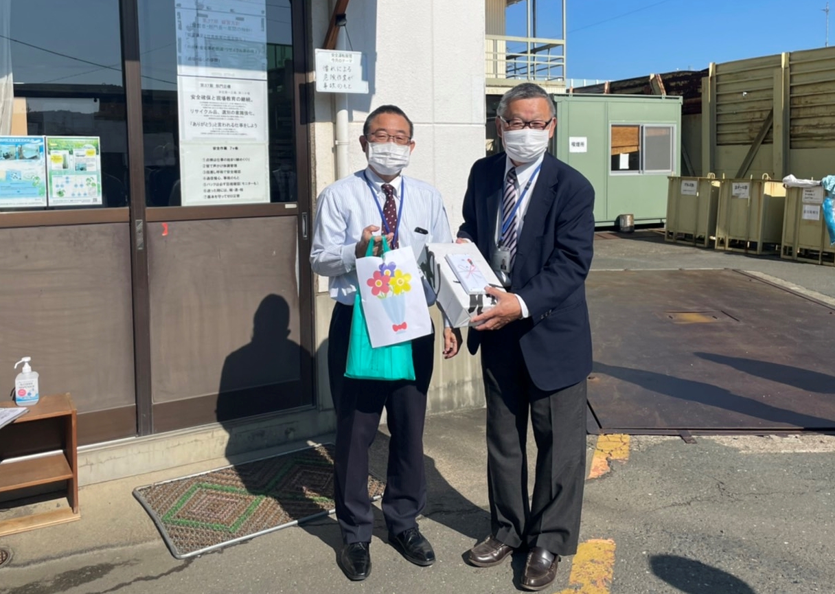 ニュースがもう一つ、この度、長い間営業担当として活躍をしていただいたT木さんが定年退職の日を迎えられました。社長より記念品と花束という名の御神酒?が特別にプレゼントされたようです。※多分、ただのお酒(T木氏の大好物)だと思いますが・・・