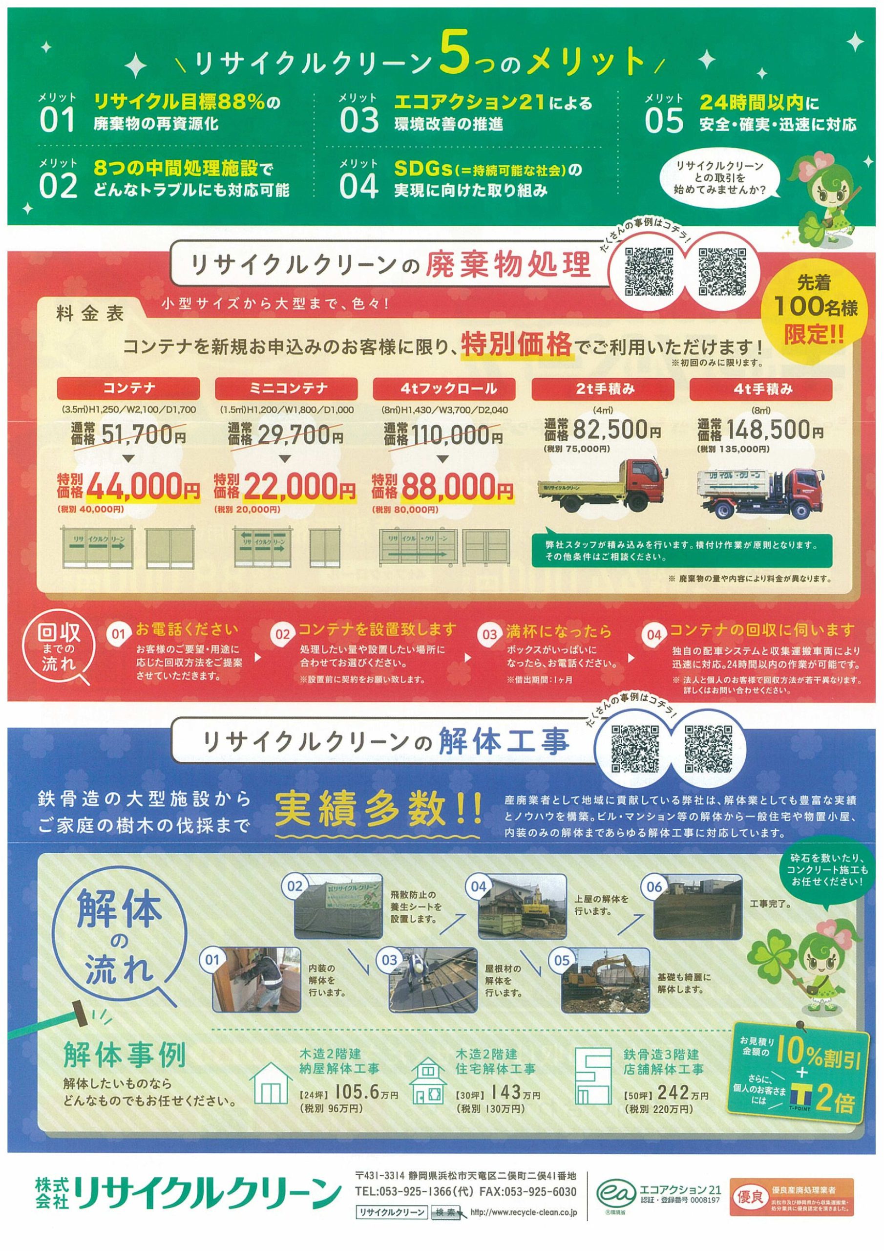 新規にコンテナをお申込みのお客様に限り特別価格でご利用できます。廃棄物処理ご検討中の法人・個人のお客様は是非ご検討下さい。もちろんオリジナルBOXティッシュ5箱とオリジナルタオルの粗品セットも差し上げます!