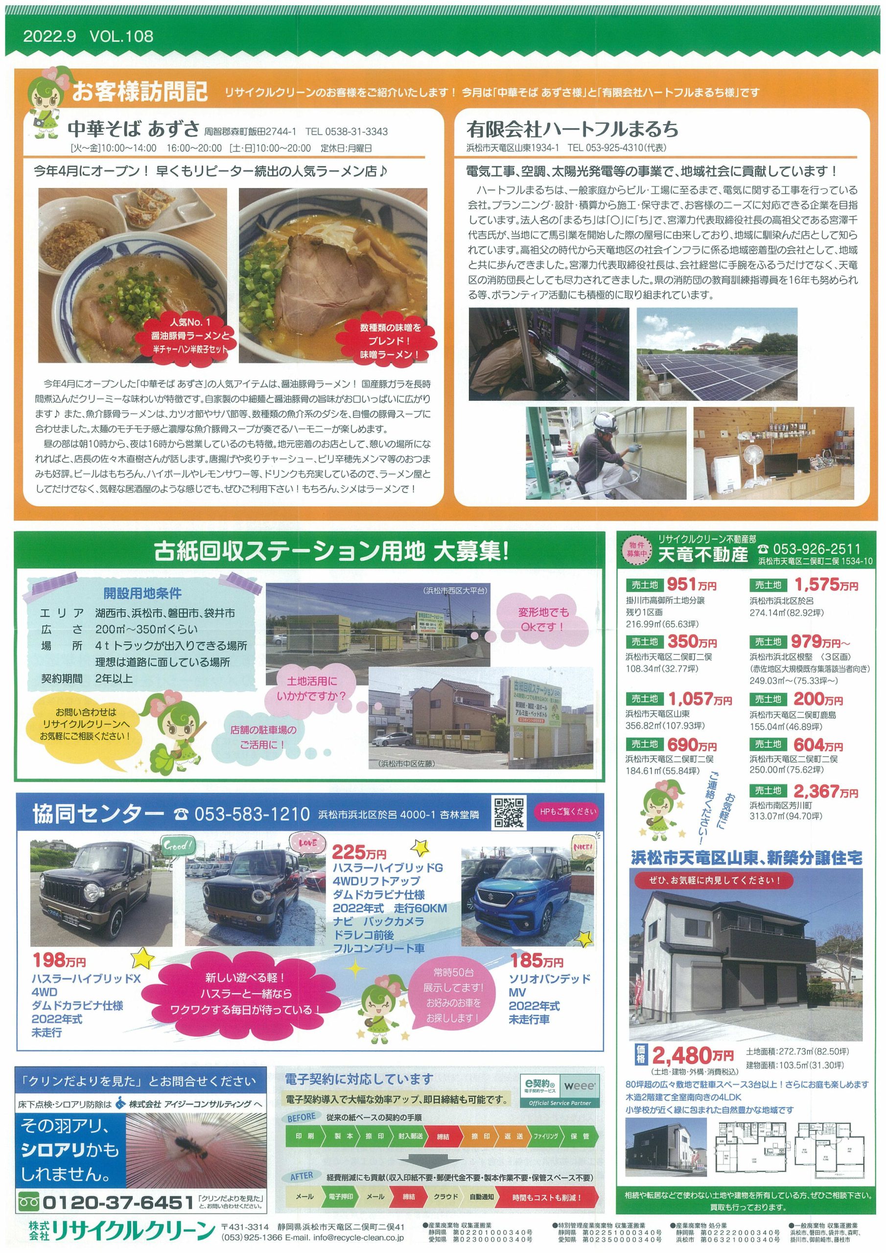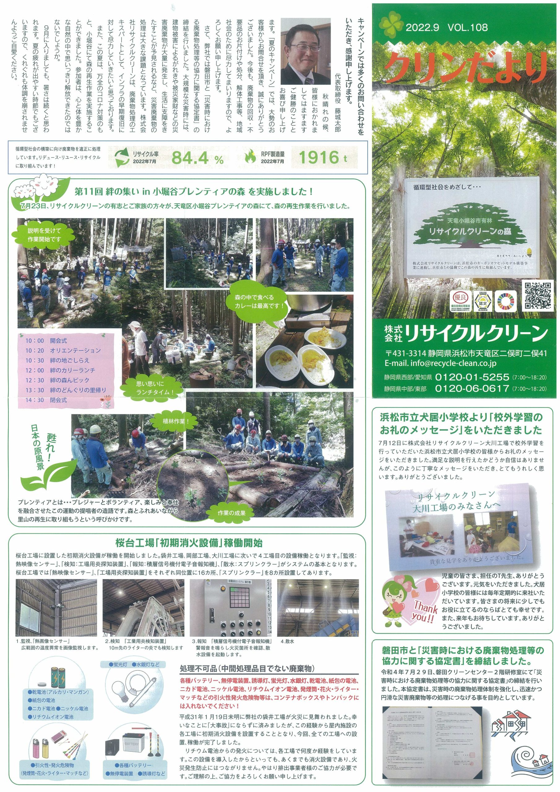 ㈱リサイクルクリーン広報誌「クリンだより」2022.9.VOL.108