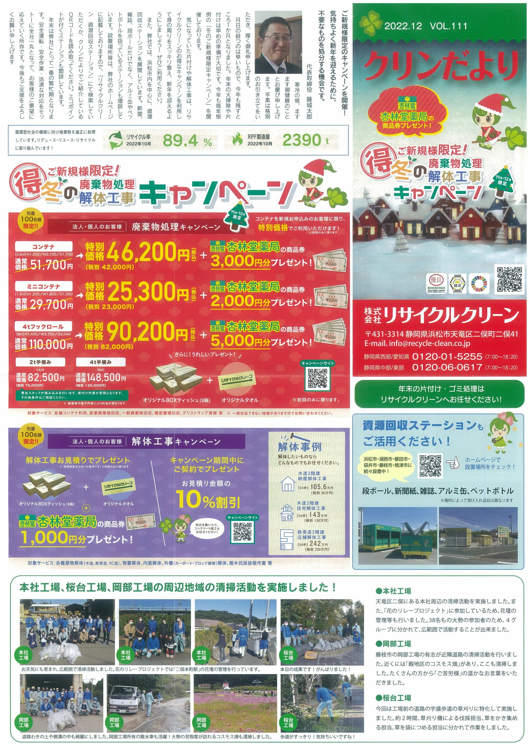 ㈱リサイクルクリーン広報誌「クリンだより」2022.12.VOL.111