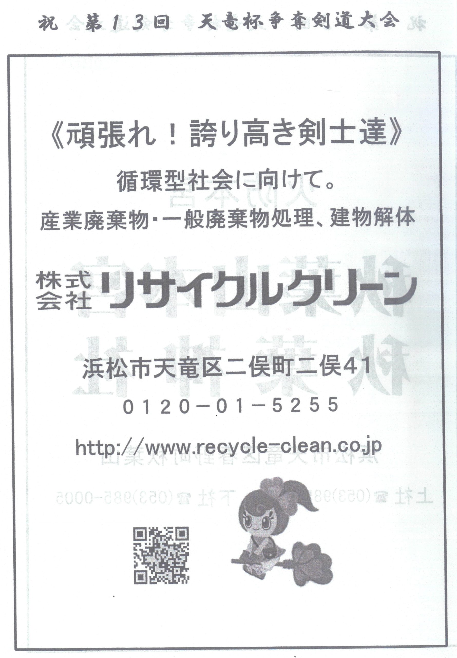 第13回天竜杯争奪剣道大会の広告で協賛させて頂きました。