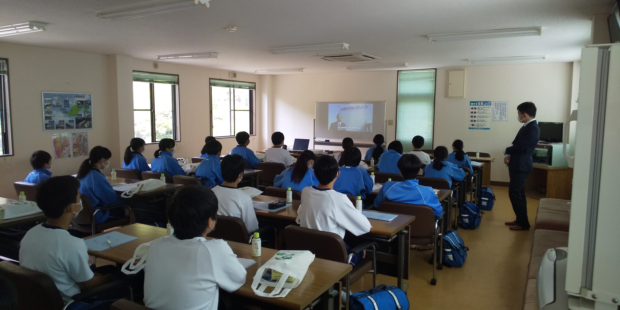 4月19日、袋井市立袋井南中学校の2年生28名が株式会社リサイクルクリーン袋井工場、袋井RPF工場の見学に見えられました。新学期が始まってすぐの校外学習です。ご来社いただきありがとうございます。