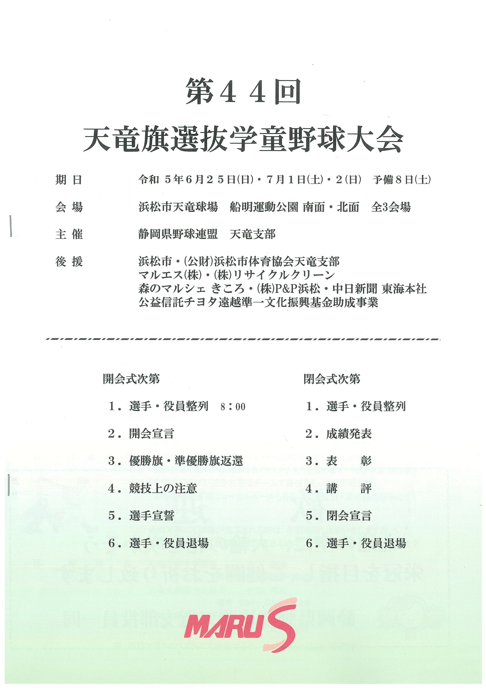 第44回天竜旗選抜学童野球大会に協賛させていただきました。
