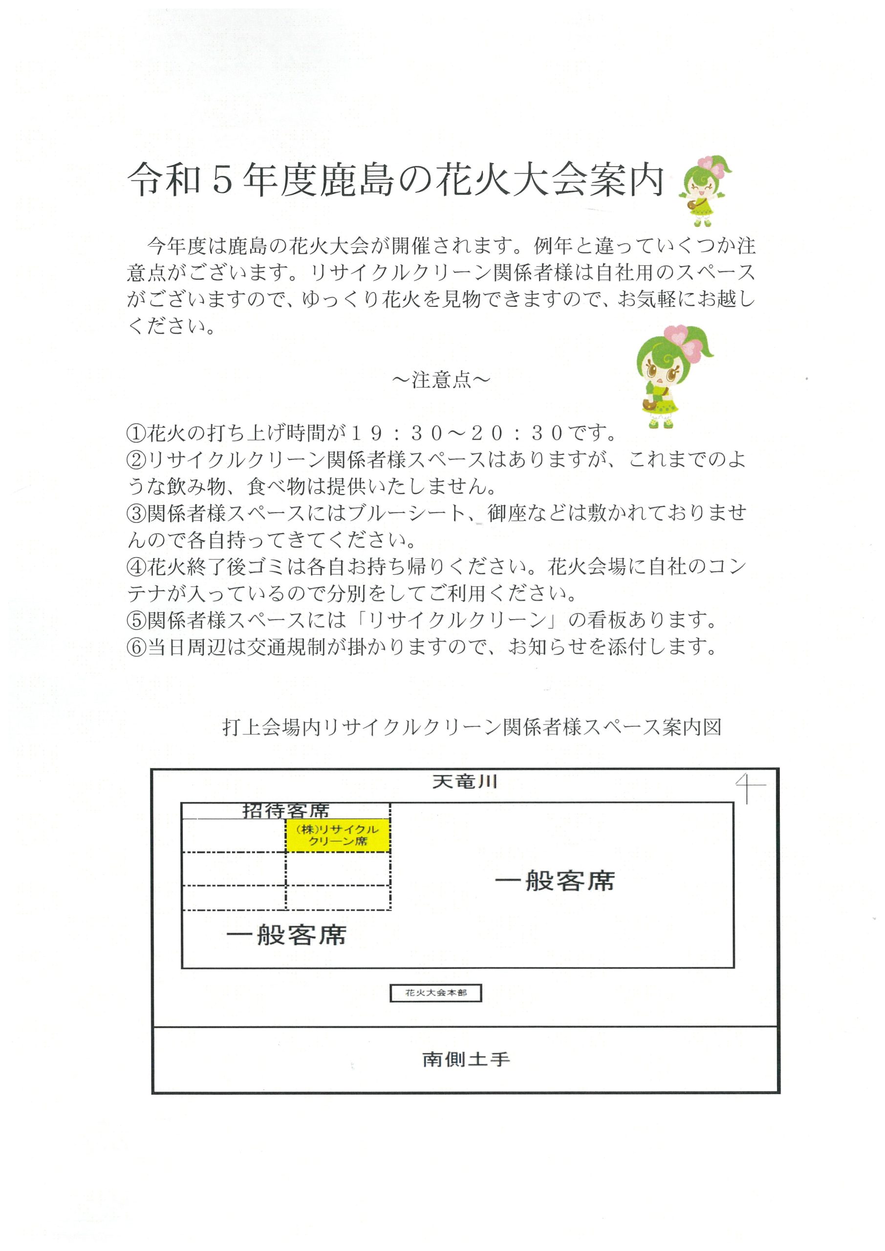 株式会社リサイクルクリーンが協賛させて頂いている「鹿島の花火大会」。4年ぶりに開催されます。(規模は縮小されるとのことです)
