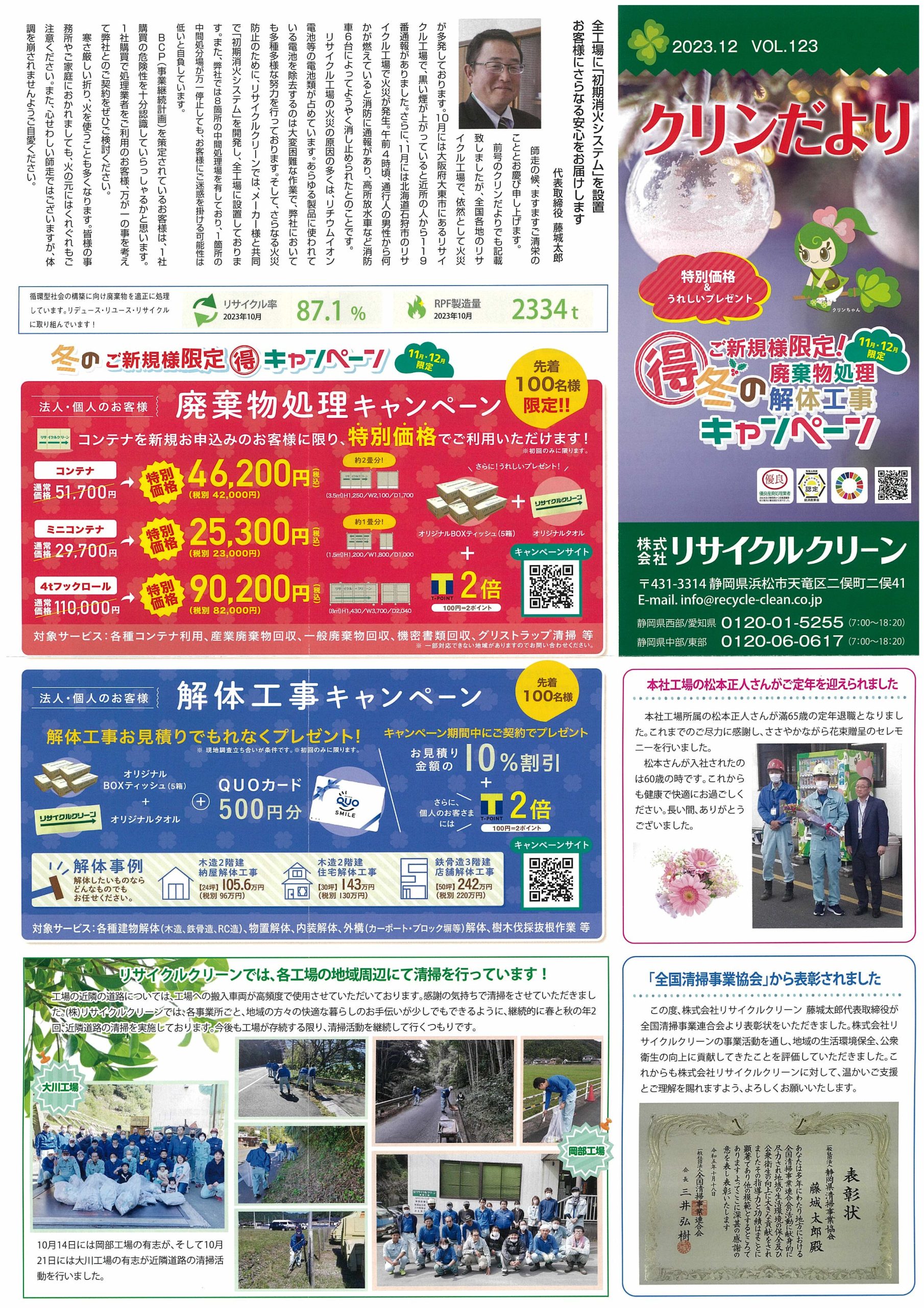 ㈱リサイクルクリーン広報誌「クリンだより」2023.12.VOL.123
