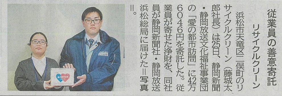 募金愛の都市訪問株式会社リサイクルクリーン静岡放送静岡新聞社天竜支局
