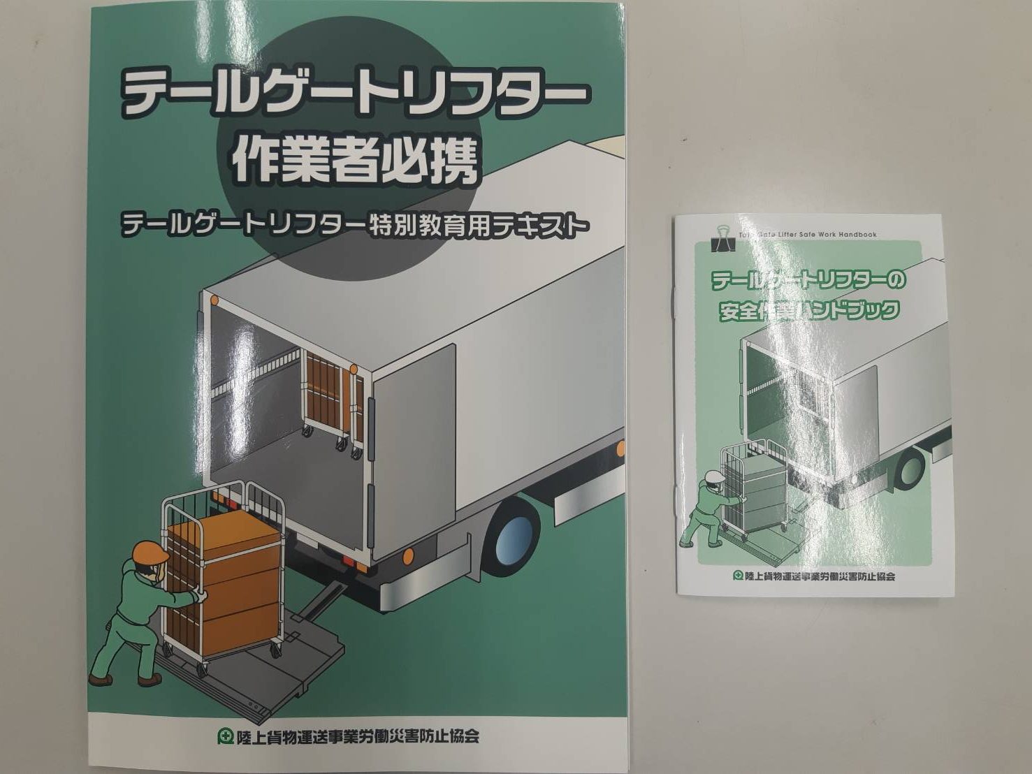 勉強会では、上記のテキストに沿って、テールゲートリフターの基礎知識、部位の名称、種類、構造、取り扱い時の注意点、点検整備の方法、作業に関する情報等を学習しました。