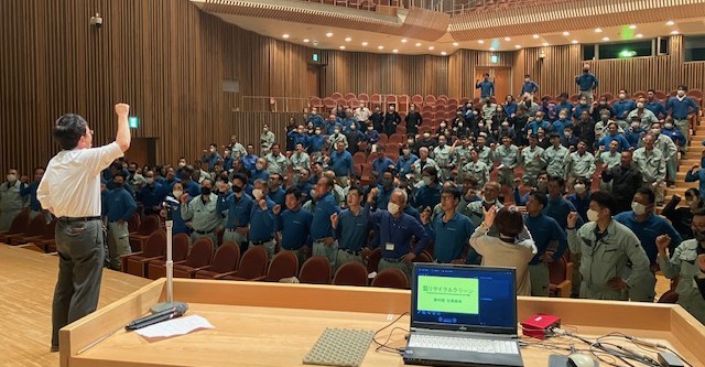 2025年6月6日に天竜壬生ホールにて株式会社リサイクルクリーン社員総会を開催しました。2019年以来6年ぶりの開催となりました。当日は社員全員が集合し、藤城社長の発表の後は、各部門、各工場ごとに特徴、取組、専門部門はその作業内容や現場写真などを発表しあい、お互いの理解を深めました。