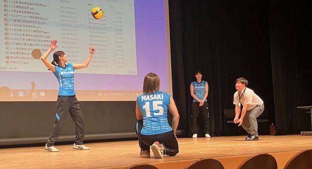最後に(株)リサイクルクリーンが応援している第72回黒鷲旗選抜バレーボール大会準優勝の「ブレス浜松」の紹介とちょっとしたお遊びを行いました。