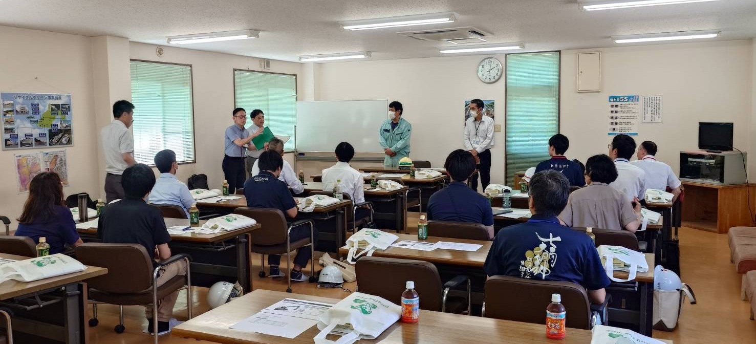6月17日、浜松市、磐田市、掛川市、袋井市、湖西市、御前崎市、菊川市、牧之原市、森町の9自治体で構成される「遠州地域カーボンニュートラル自治体連合会」の皆様が、株式会社リサイクルクリーン袋井工場、袋井RPF工場の視察に見えられました。