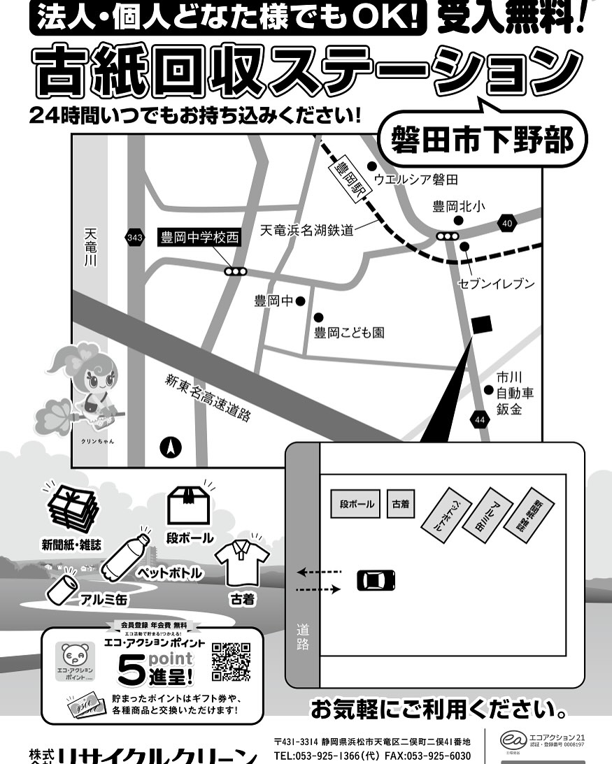 磐田市下野部(旧豊岡村)に古紙回収ステーションを設置しました。
