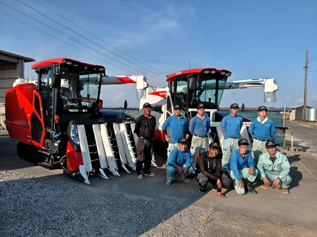 弊社関連会社の㈱溝口商店に新車のコンバインが納車されました。稲刈りシーズン突入です。