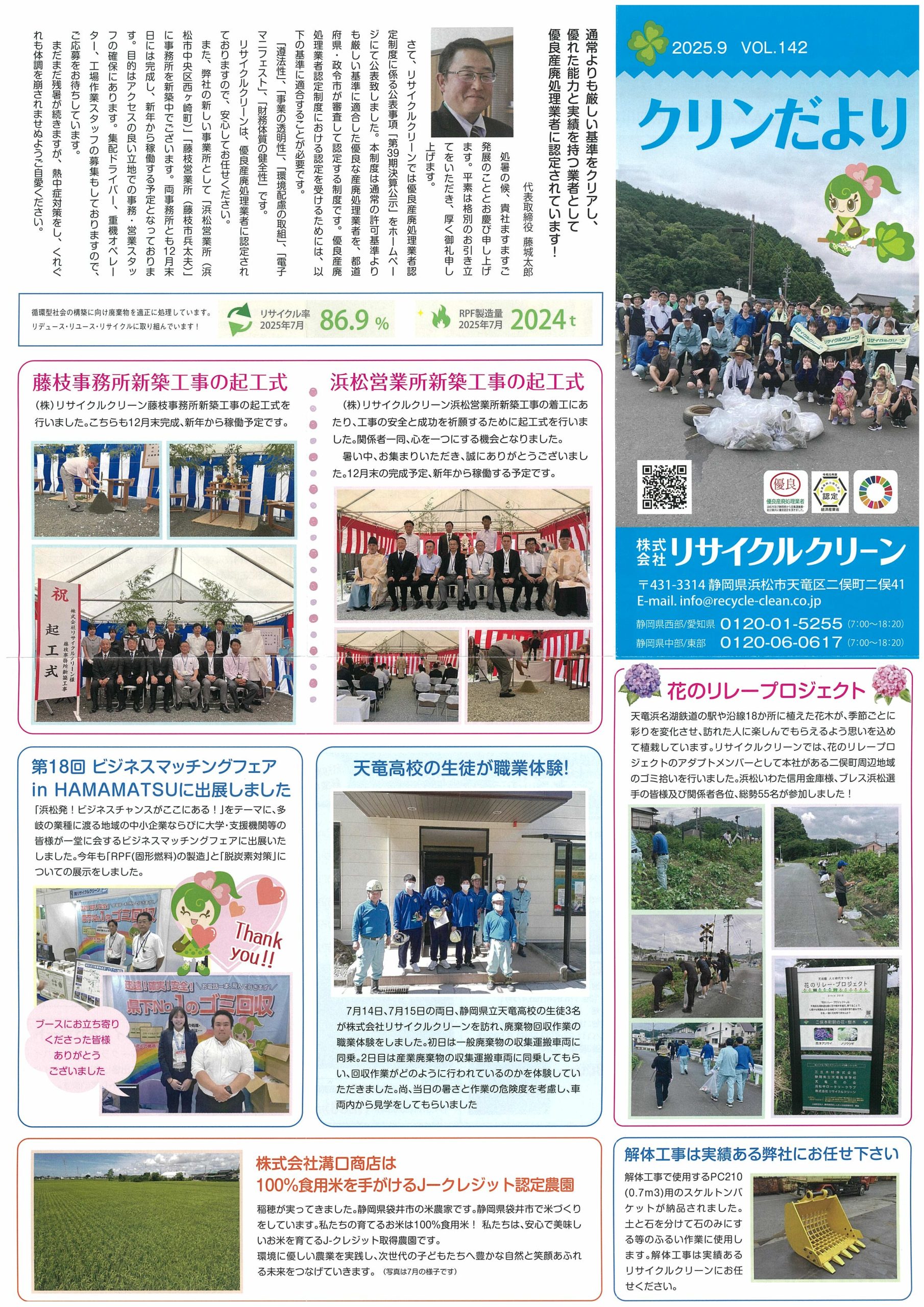 ㈱リサイクルクリーン広報誌「クリンだより」2025.9.VOL.142