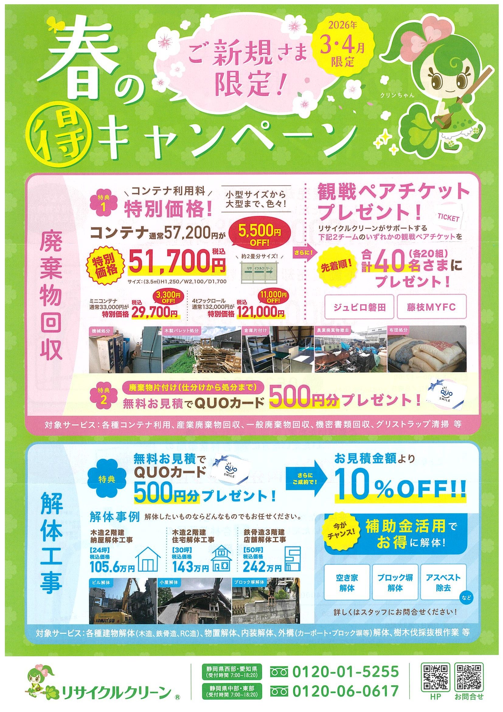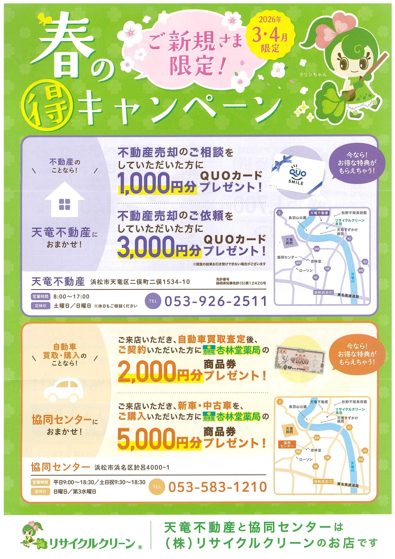 3月から4月末まで春のキャンペーン開催中!