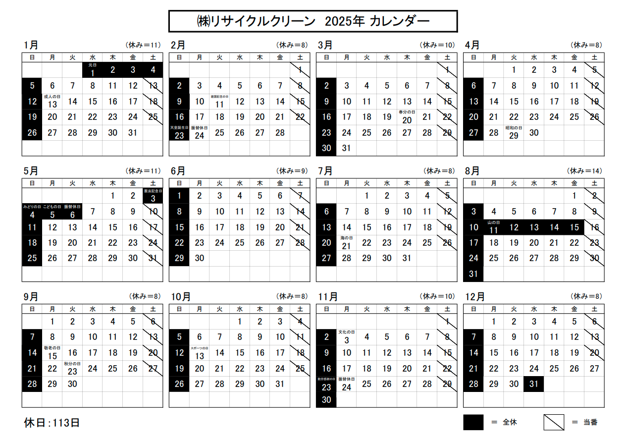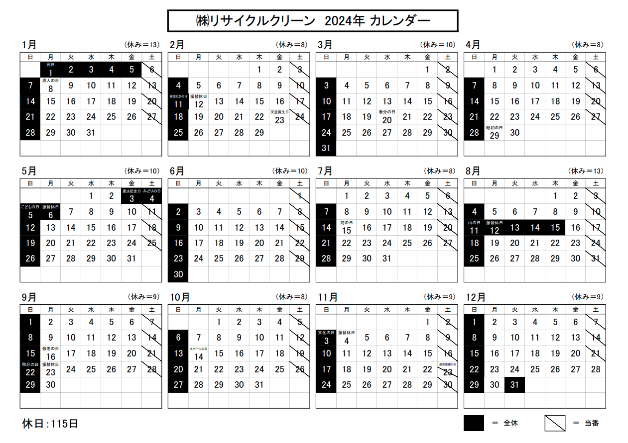 営業カレンダー