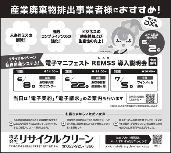 (株)リサイクルクリーン独自開発の電子マニフェストサポートシステムREMSS(レムズ)の説明会を開催いたします。