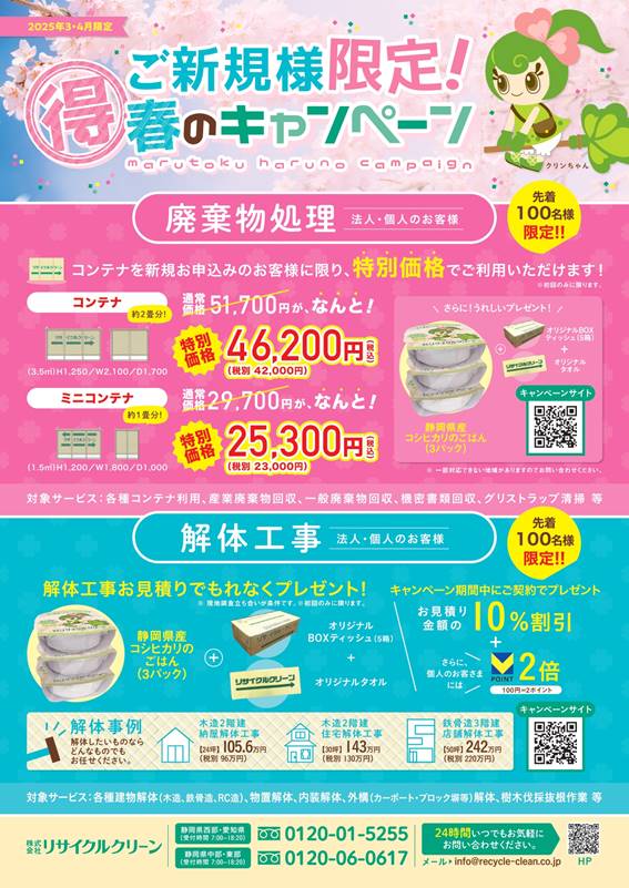31日~4月末の期間中 ご新規様限定 春のキャンペーン実施中です。