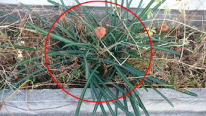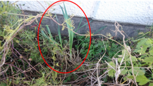 こちらがヒガンバナ 葉っぱに、筋が入ってます。 |
