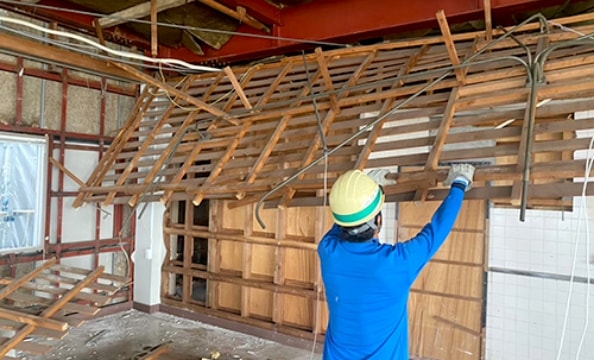 壁や床等、リサイクル率をアップさせるために、重機を使わず手作業で解体しリサイクルクリーンの中間処分場等へ搬出します。 -