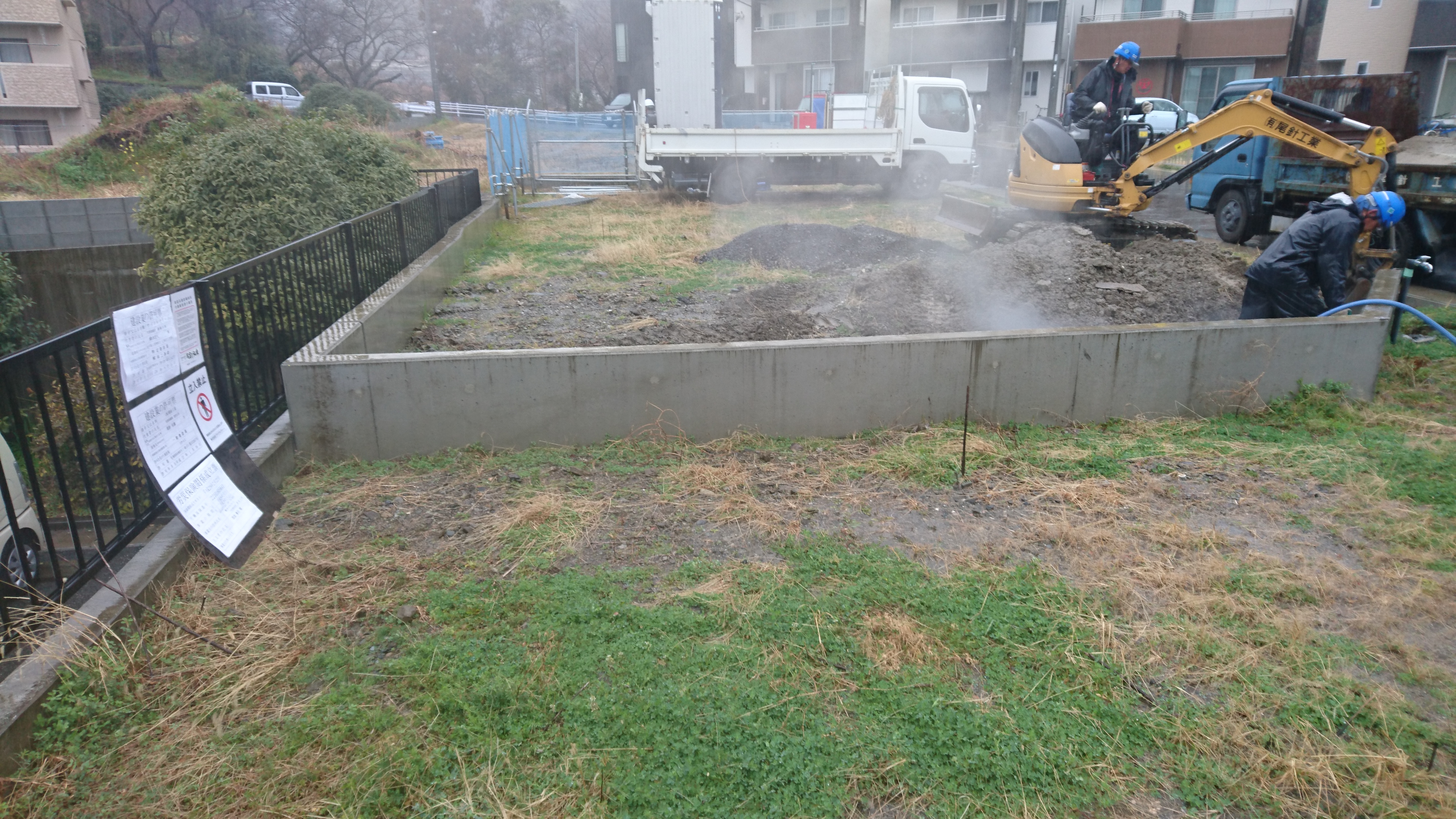 先日、雨の中土地区画の見切り撤去工事の着工が有りました。
