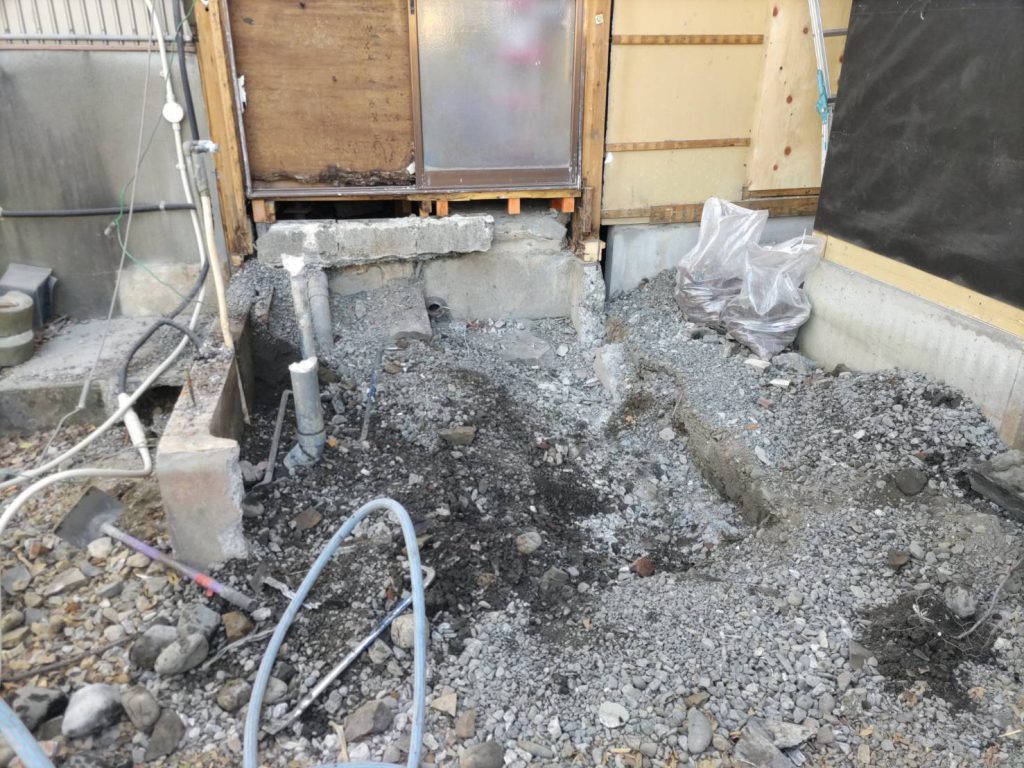 既存の風呂場の解体、減築がありました。