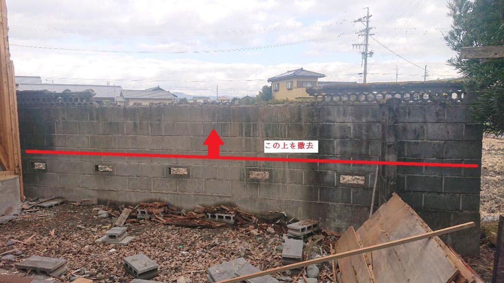 基礎と2段だけカッター作業をして残し、ブロック塀解体も行いました。