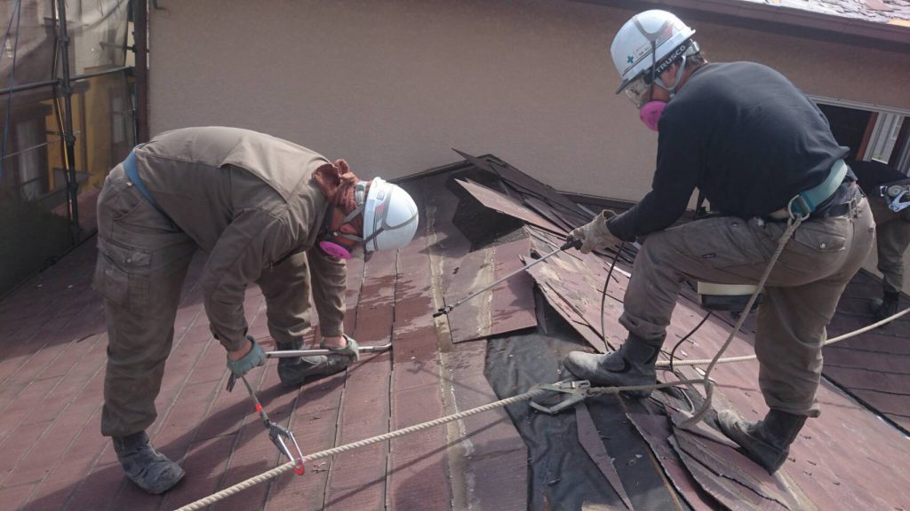 「カラーベスト」と呼ばれる建材の撤去作業です。