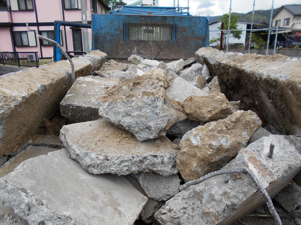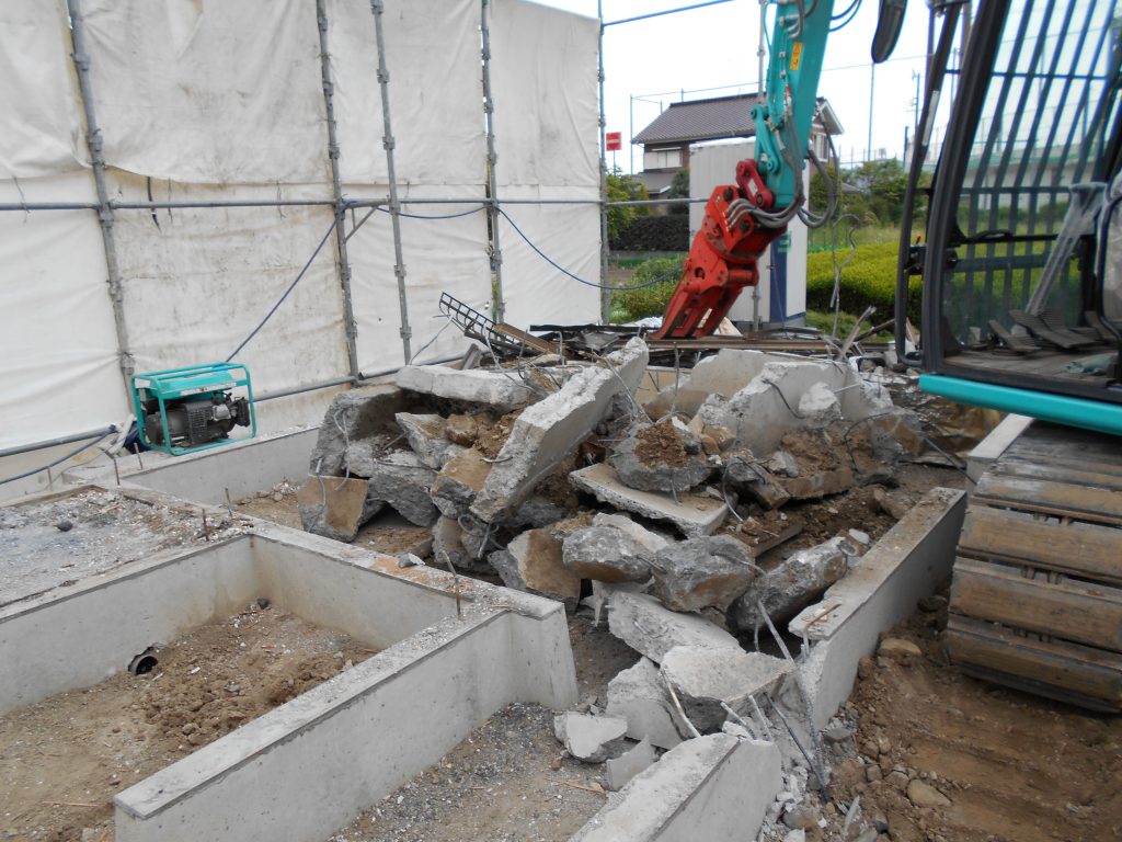 上屋を完全になくして基礎だけの状態にして、解体、積込を行います。