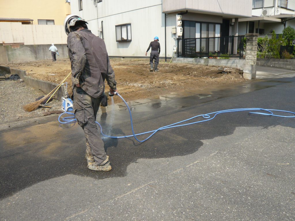 簡単に整地して、前面道路などの清掃を行います。