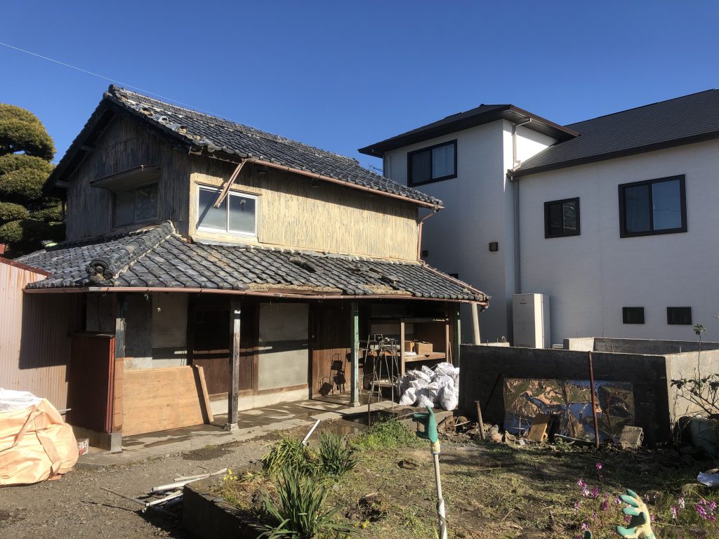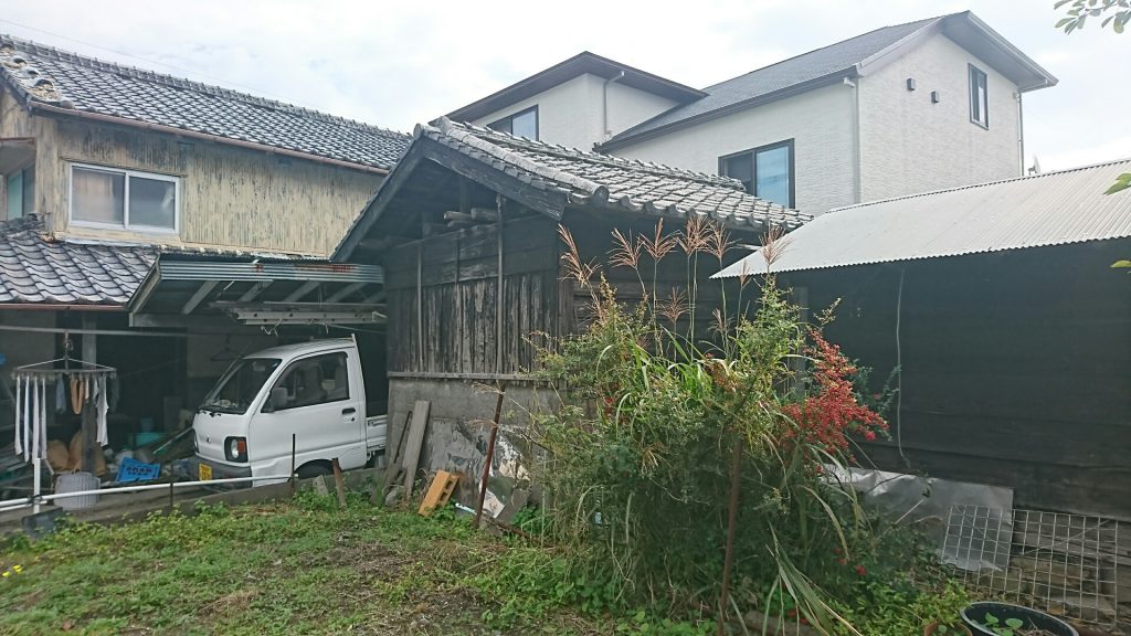 今回の工程により写真手前の平屋の小屋の上屋を解体しました。